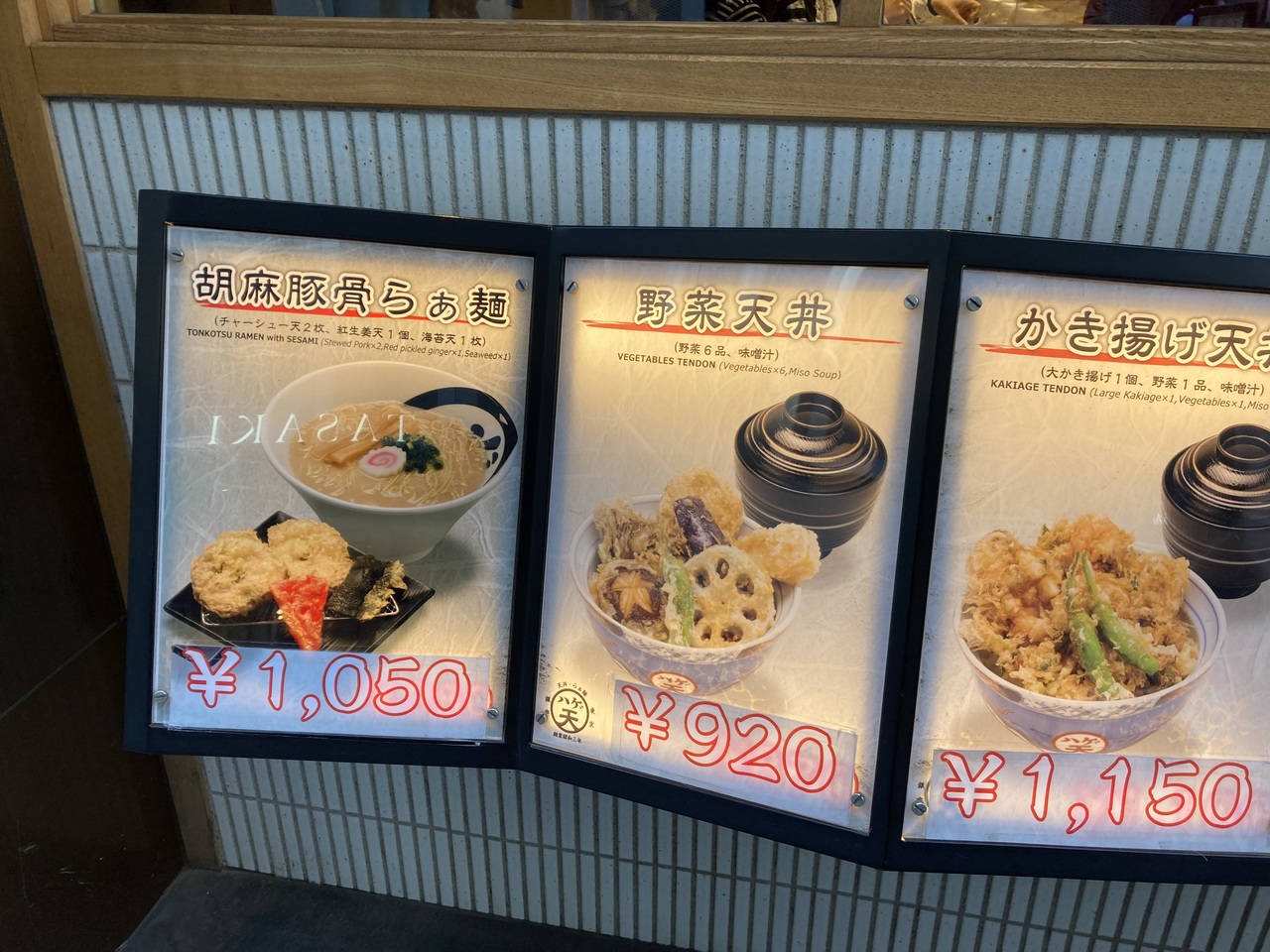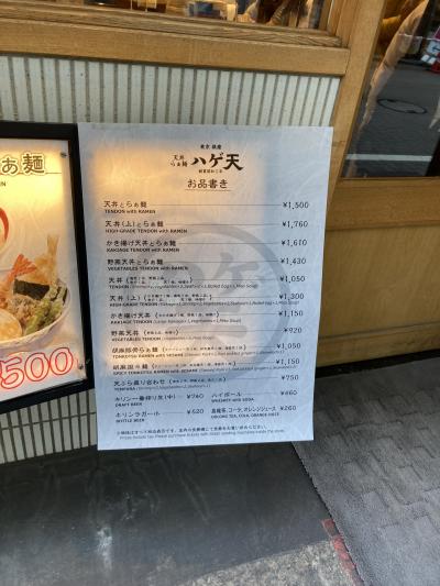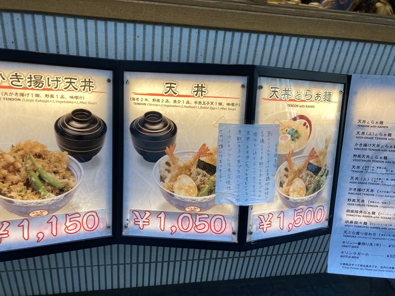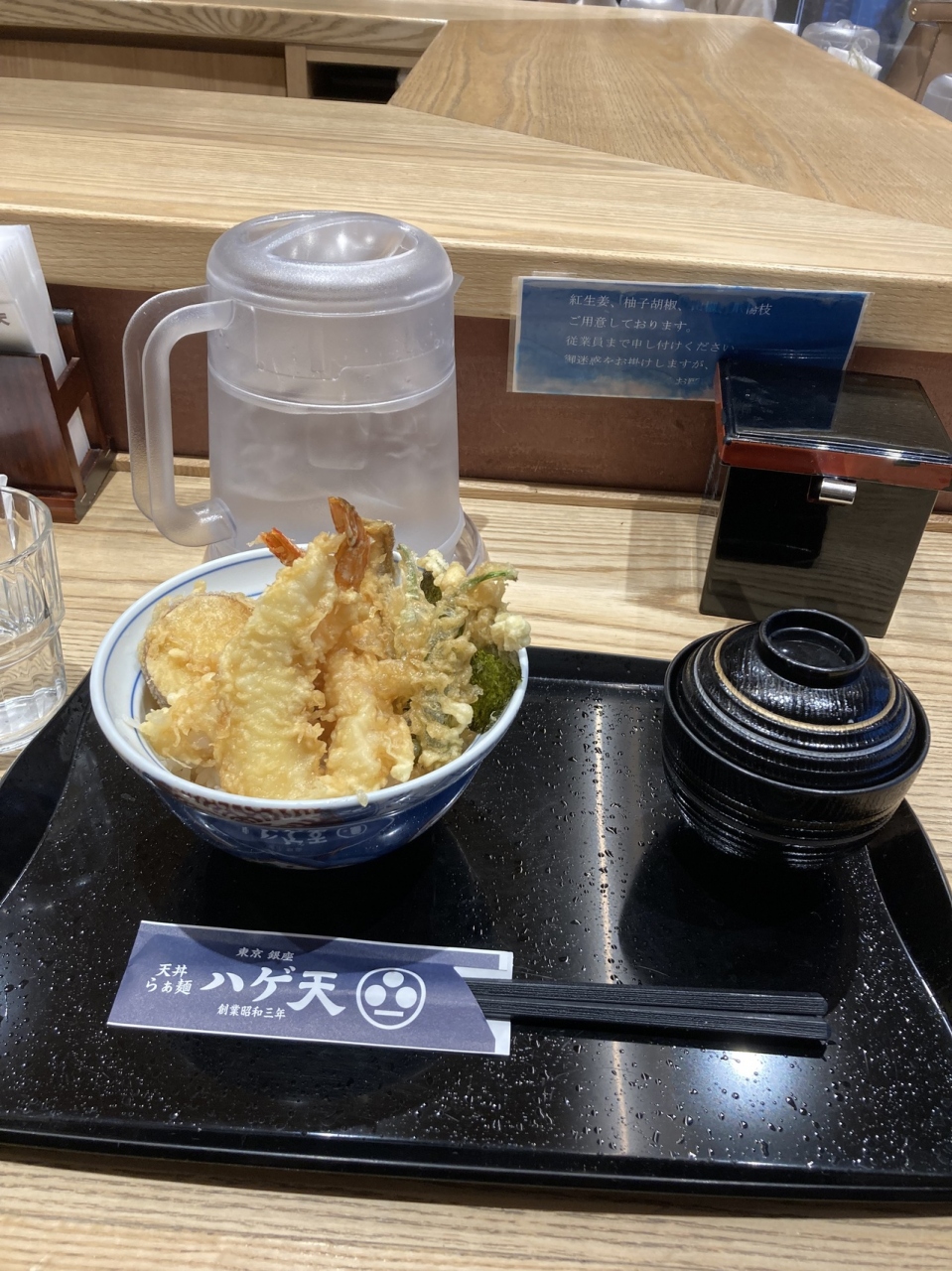 築地場外市場の帰りにランチをどこにしようかとグーグルマップで検索、良さそうだったので訪問。すずらん通りにあり、カウンターのみ。券売機でチケット現金購入。天丼1050円、かき揚げ丼1150円。ラーメンとコラボのお店だけどラーメンセットを食べてる人は少なめでした。