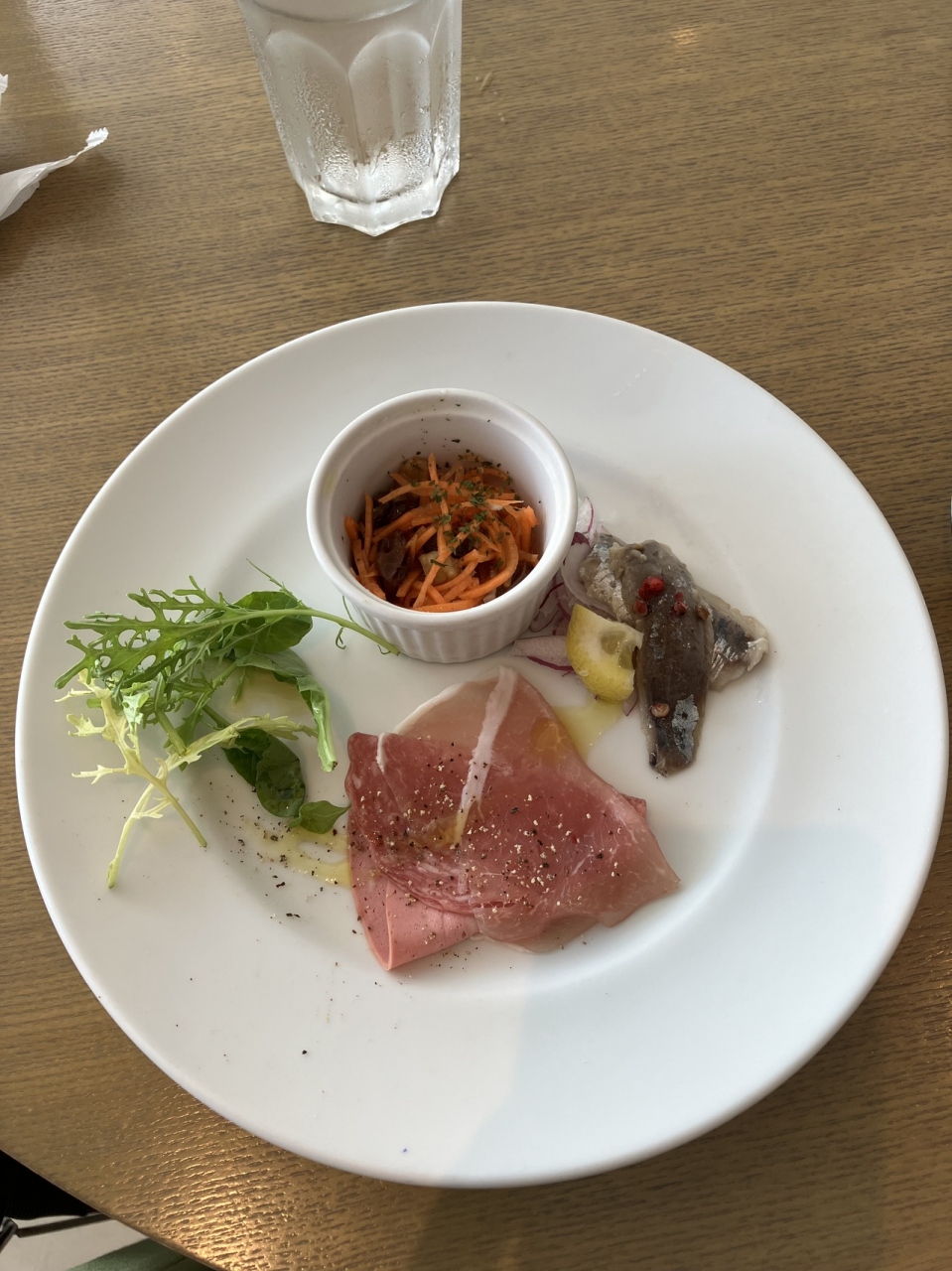 土曜の12時に友人がランチコースを予約してくれて訪問。前菜、スープ、デザートは日替わりでライスかパン、メイン、ドリンクは自分で選びます。ライスは白米か穀米が選べました。店内はそんなに広くはなくて満席時はテラス席も案内されてました。カジュアルなフレンチレストランで入りやすいと思います。