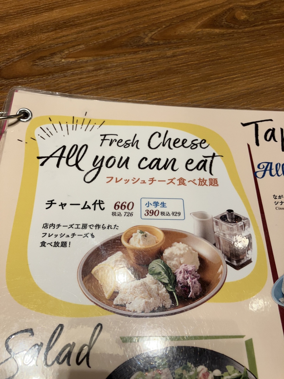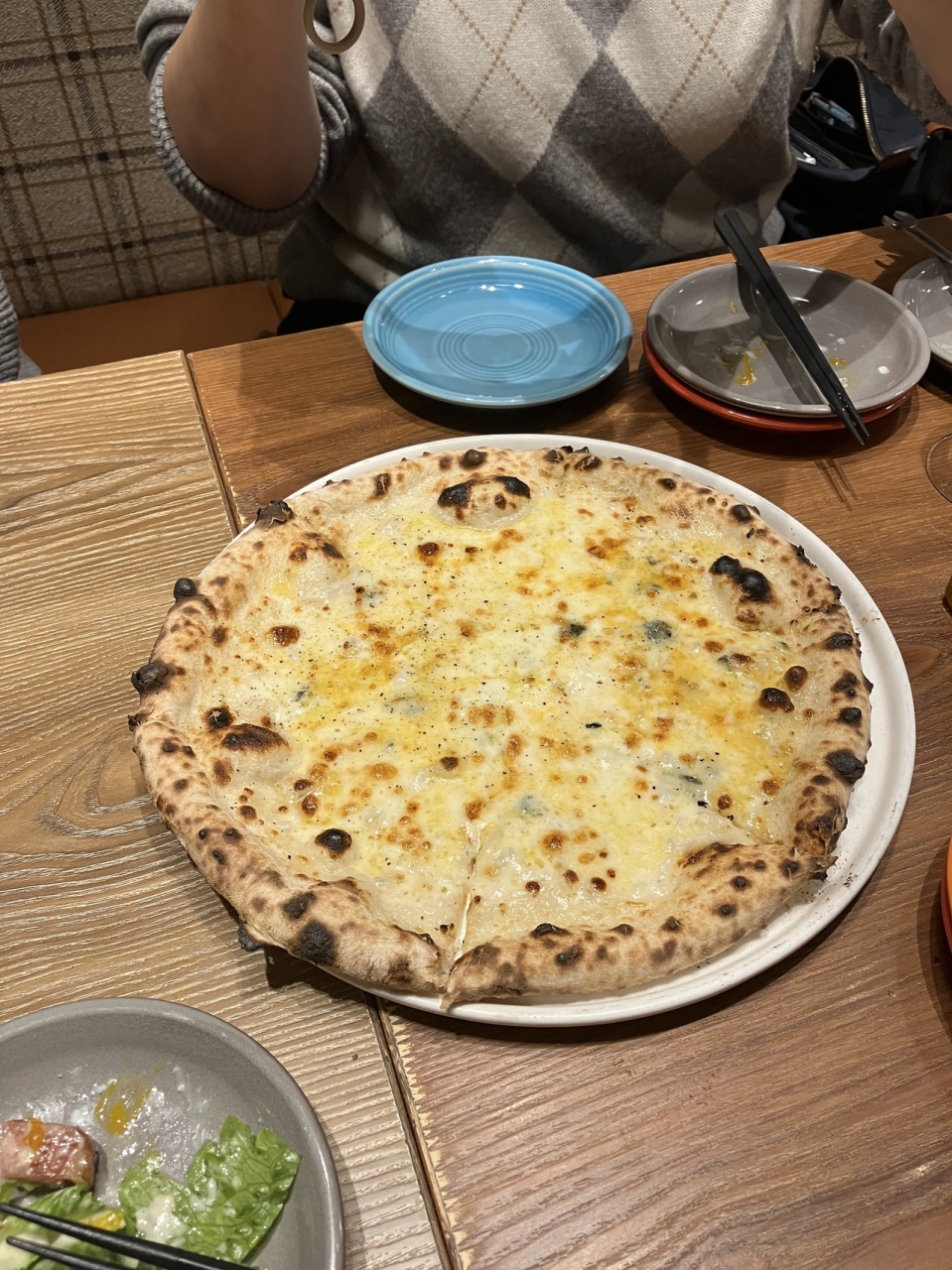 友人と土曜18時、席だけ予約して訪問。フレッシュチーズ食べ放題は必ずつけるシステム。6種類位あって自分で取りに行きます。チーズのアレンジ用にオイルや胡椒、蜂蜜もありました。注文はQRコードで注文するセルフオーダーでした。最初のオーダーがうまく入ってなくてなかなかドリンクがこない場面もあったけどピザもサラダも美味しかったです。2時間で退店するよう言われてた為デザートまでは時間が足りず。また機会があったらランチ時間に行ってみたいです。
