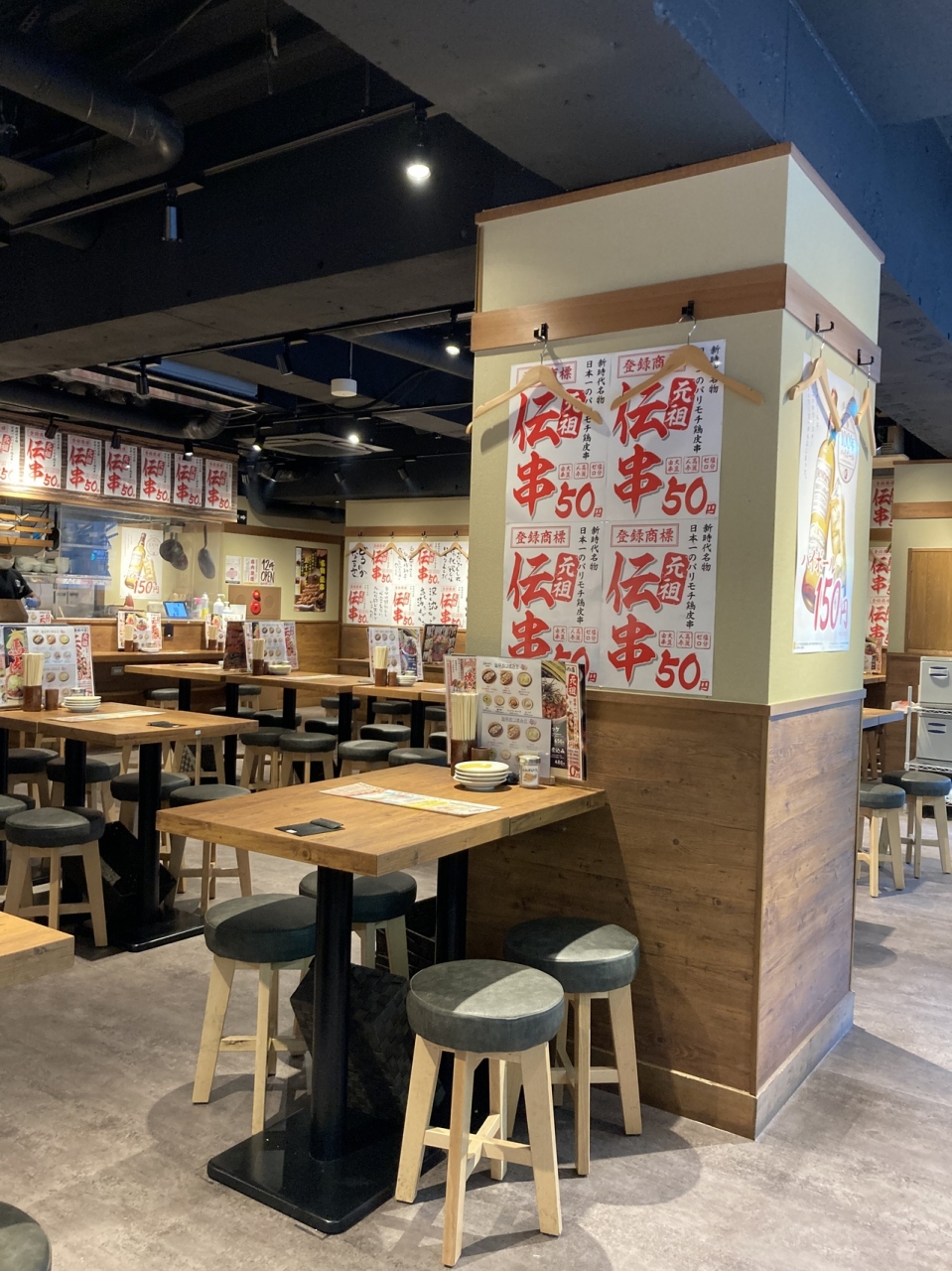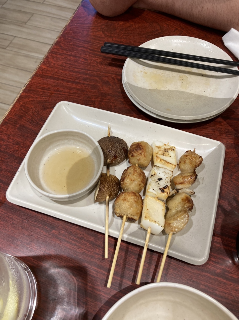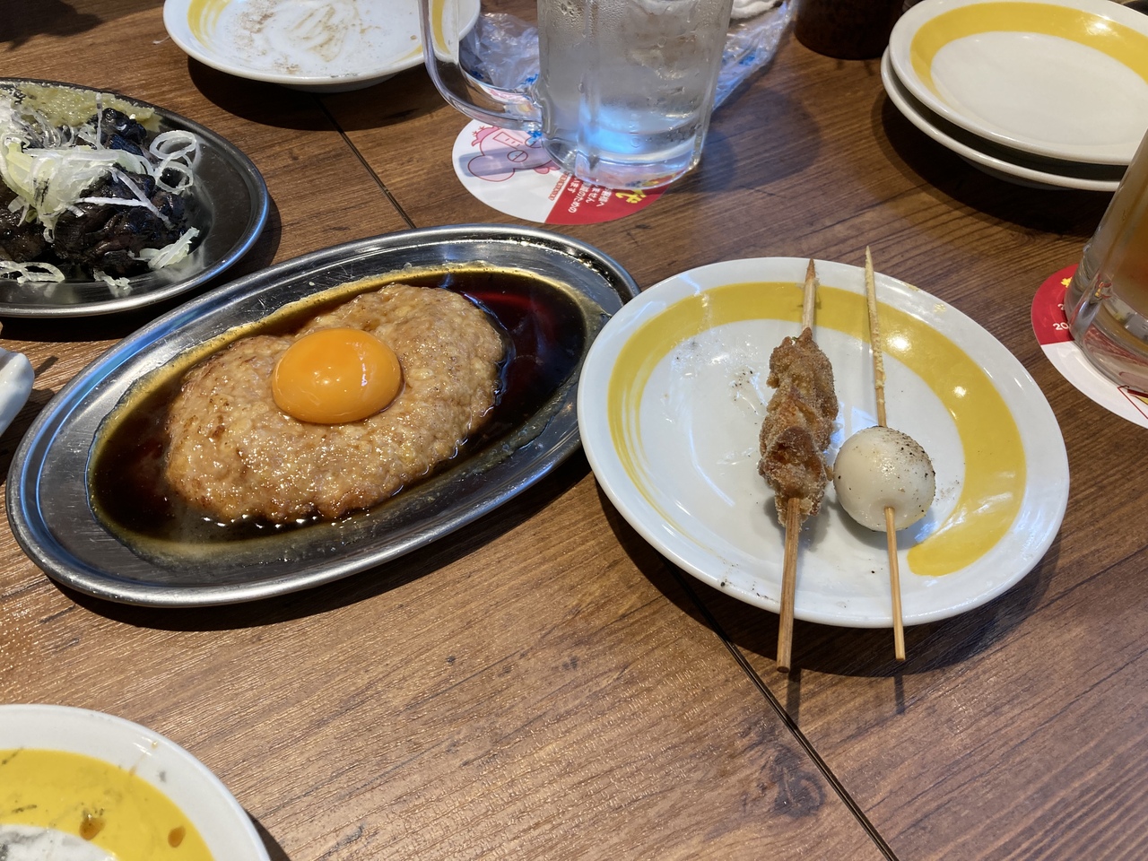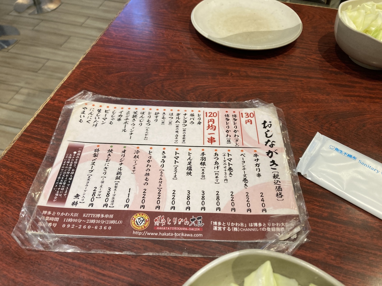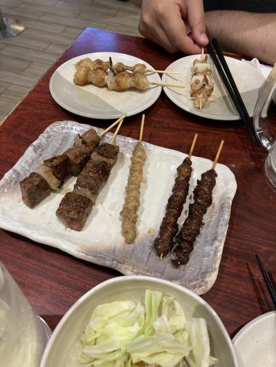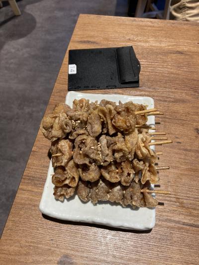 日曜の夜ご飯の時間帯に訪問。満席でエスカレーター横の場所に並びました。お店と通路が仕切られていないのでさくっと食べたら退店しました。最初に出てきたキャベツは無料のようでした。レモンサワー、とりかわのたれと塩、きも、ぼんじり他注文。とりかわは新橋の○串の方が好みでした。