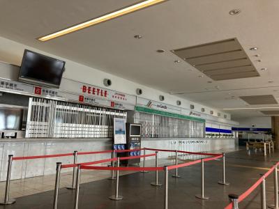 天神からバスで行ってみました。現在定期便が運休中なので施設内はがらんとしてましたが、トイレもエスカレーターも稼働してたしレストランや1階のチキン屋さんも営業してました。2階にある顔パネルの日付もちゃんと更新されてました。運行再開された後にまた行ってみたいです。