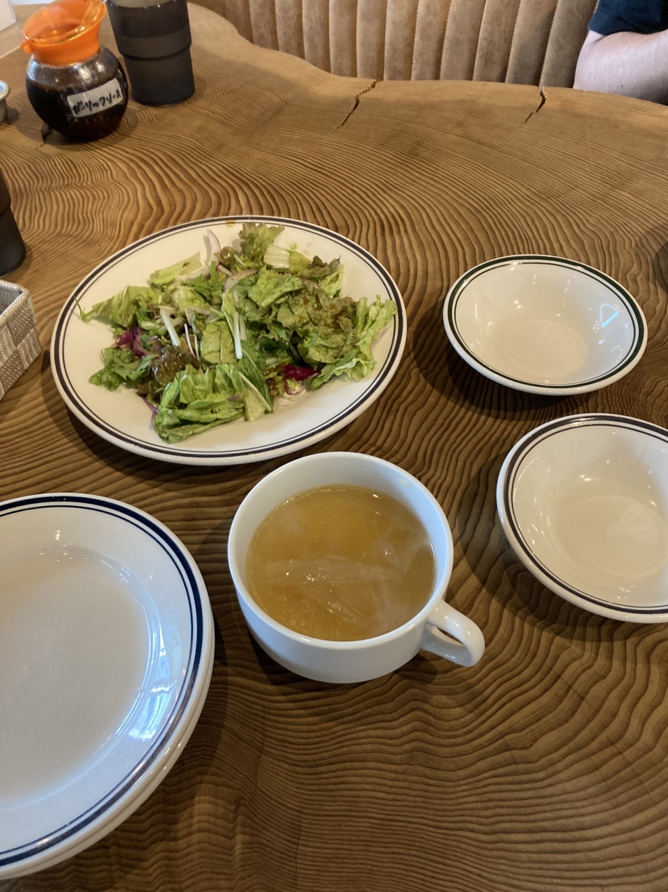 平日ランチで訪問。東戸塚駅からは歩いて5分程、ビルの2階、階段上がって左側。右は牛角。店内は広くは無く、窓際の席は段差あり。高尾山を注文、今ならスープとライスとサラダがおかわり自由で無料と言われました。スープとライスはセルフ、サラダは人数分持ってきてくれました。ポークステーキは厚切りでも柔らかく食べやすかったです。今後もスープ、サラダ、ライスが無料ならコスパはいいと思いました。