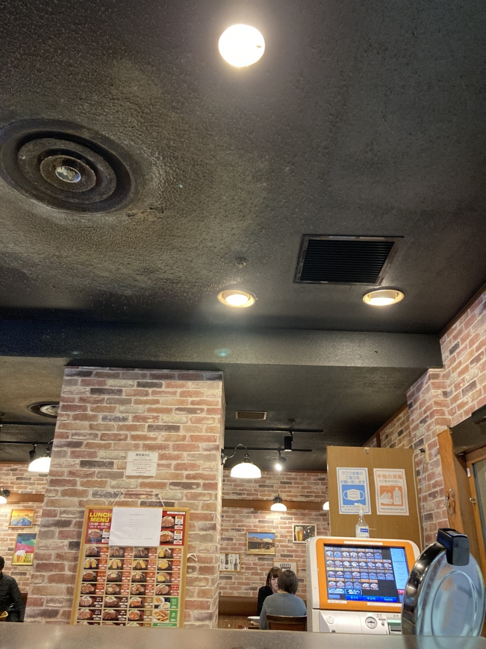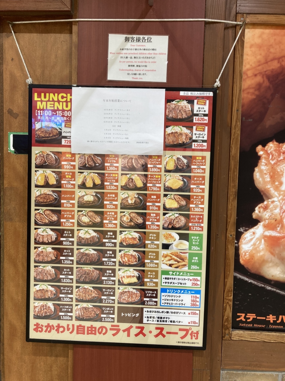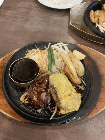 JR千葉駅下車した際にランチ訪問。JR千葉駅から京成千葉中央駅方面に沿ってある千葉ショッピングセンター内にありました。年末の12/31に行ったので当日時短営業、翌日休業の為かお昼時でもどんどんメニューが品切になってました。入店して券売機(現金のみ)で発券し席へ。牧場ハンバーグハーフ&ハーフを選択。スープとライスはセルフでおかわりできます。券売機の前にスープとライスが置いてあるので入店と重なると狭かったです。