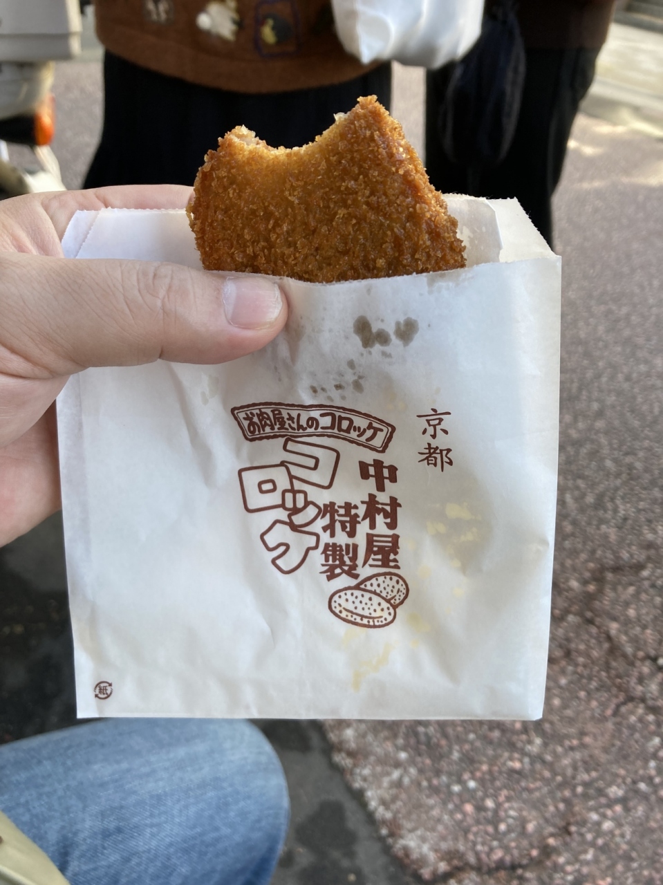嵯峨嵐山から天龍寺に行く道のりにあるお肉屋さん。平日の午前中で行った時は人もまばらで店員さんに注文してセルフレジで会計、揚げたてをいただきました。タイミングよく軒先のベンチで食べれたのでよかったです。食べてたらどんどん人が集まってきて立食いしてる人も多かったです。