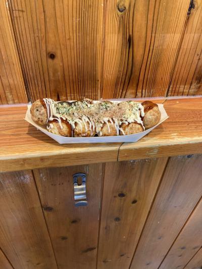 以前、新梅田食堂街に行った時に知ったお店。今回、たまたま並んでいなかったので食べてみました。たこ焼き10ケを購入しレジの左側に続くカウンターみたいなとこで食べました。生のタコを使用してるそうでタコは大きく感じました。10分程で食べ終わったら10人以上並んでて人気店だと思いました。