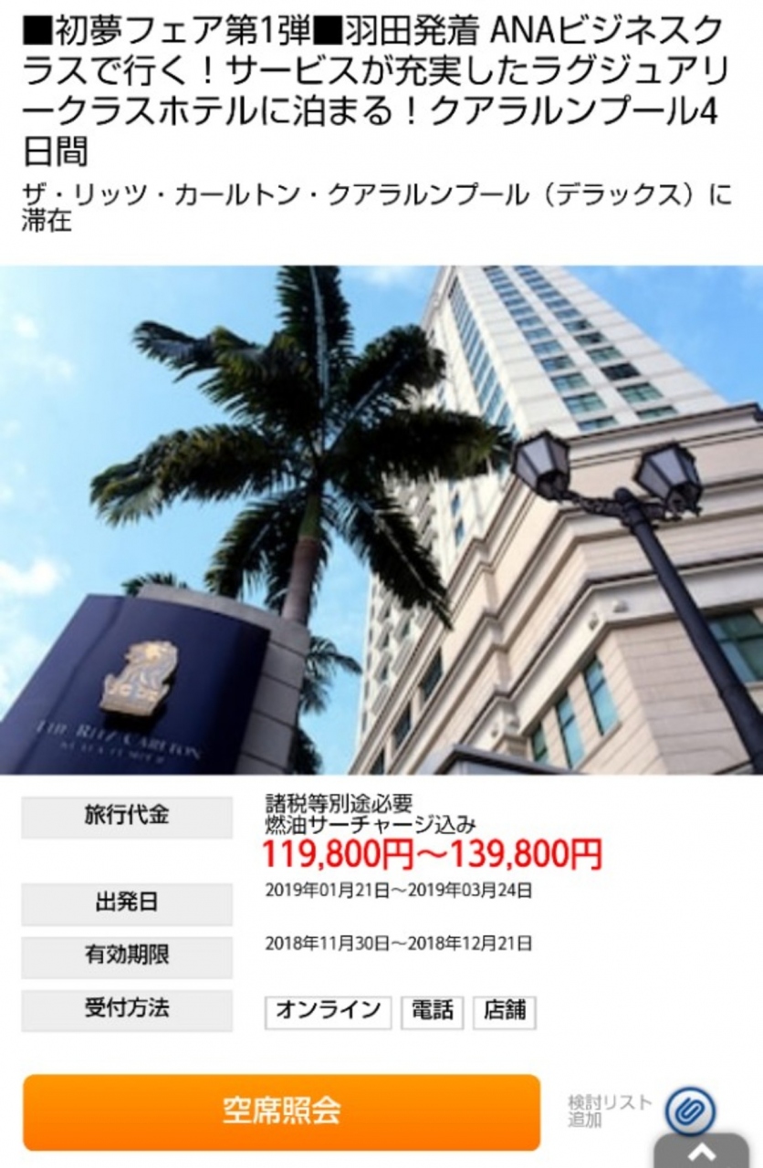 安めの手配旅行なら、一度は利用してもよいかな、という感想。24時間、電話1本でコーヒー、ジュースを無料で持ってきてもらえるのはうれしい。- 旅行時期