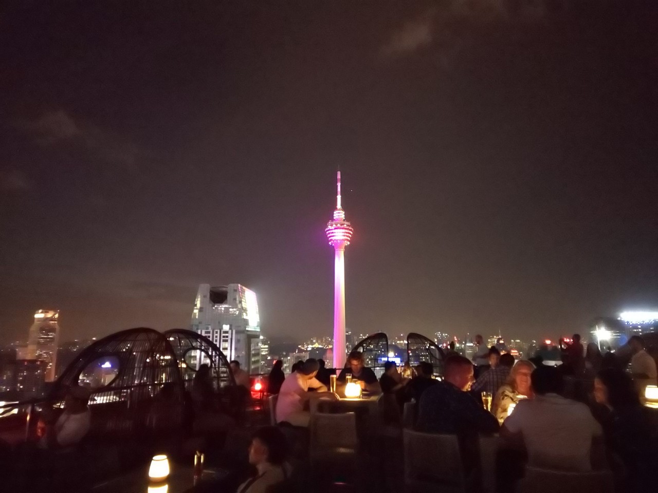 知る人ぞ知る、ビルの屋上にあるバー。KLタワーも、ツインタワーも一望。日本人も少なく、海外旅行感が増す。夕暮れ時から、日が沈んだあとくらいまでが人気なのは、なるほどうなすける。