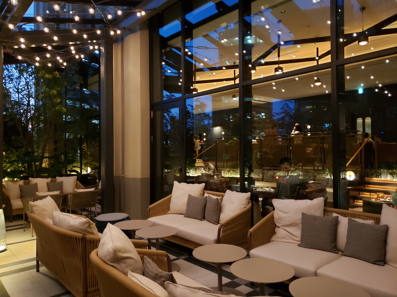 16:00~17:00 2階のディストリクトレストランにて、イブニングカクテルタイムが宿泊者は無料。ワインやカクテル、軽食あり。テラス席もあっておしゃれ。