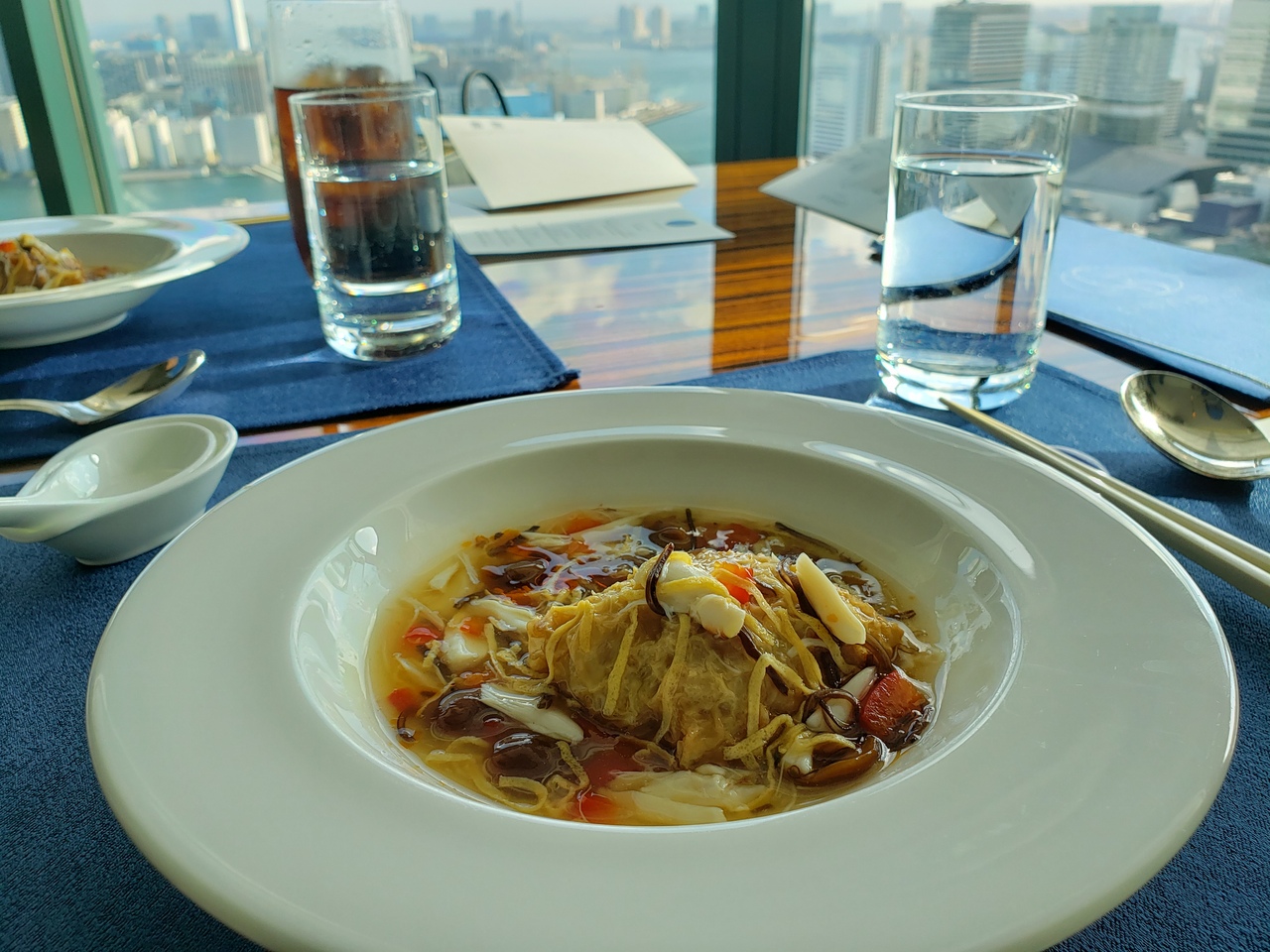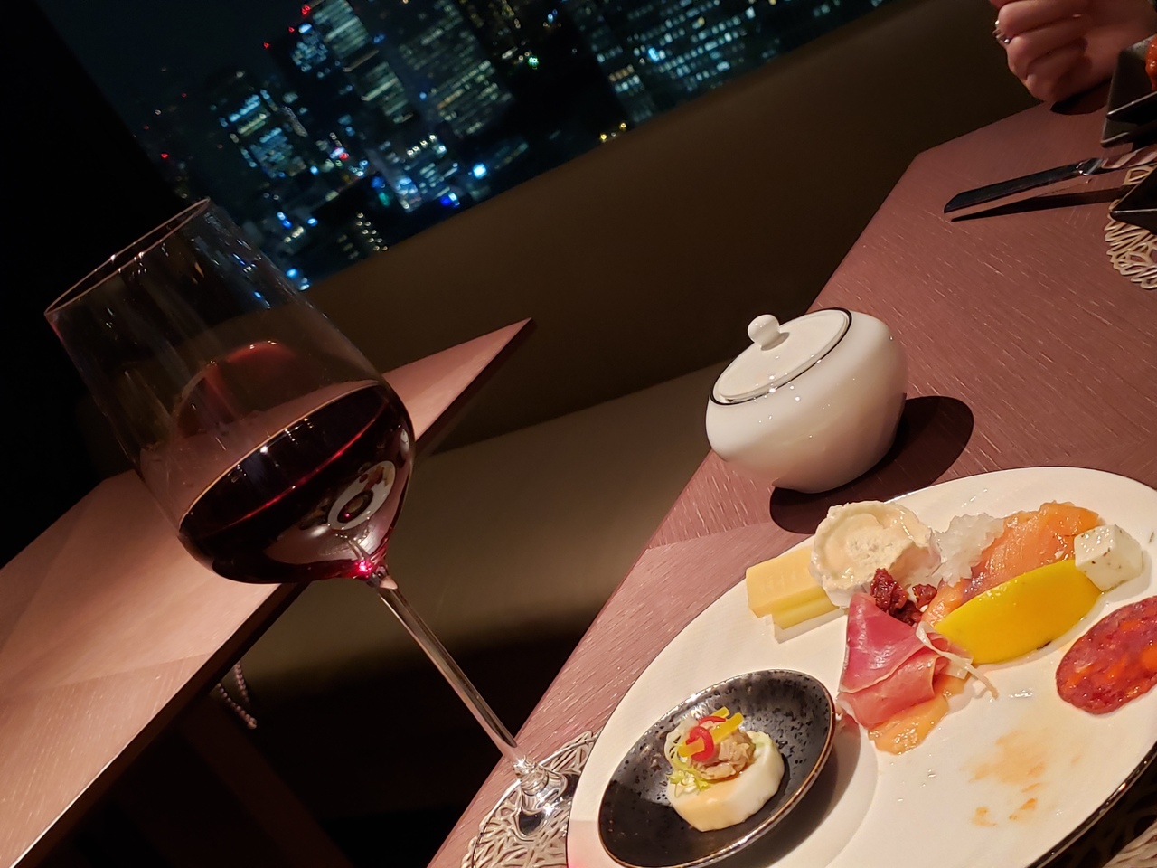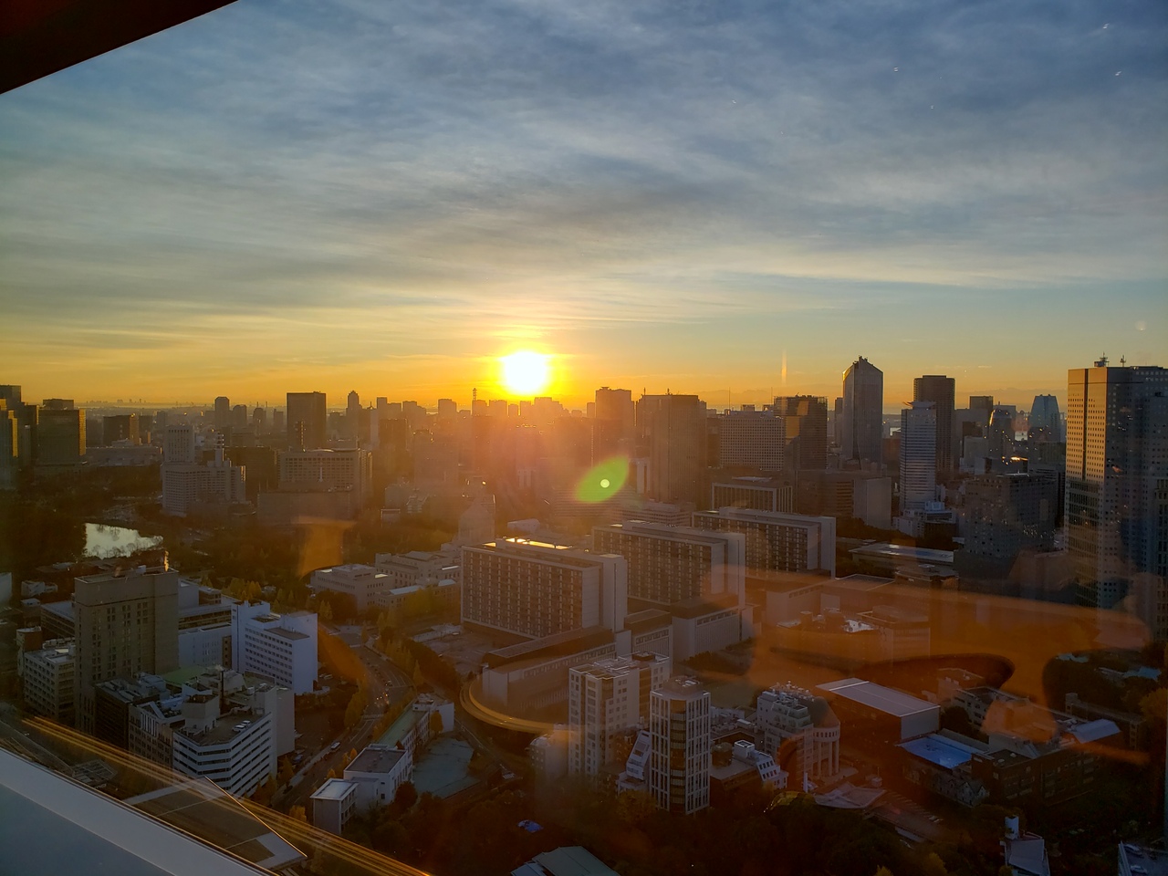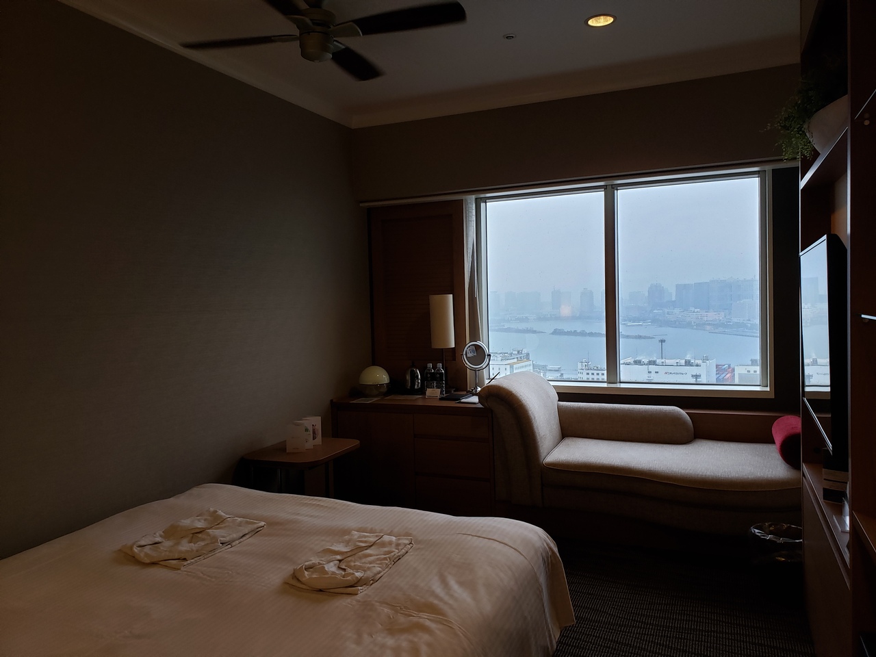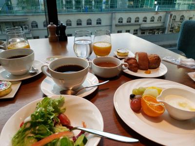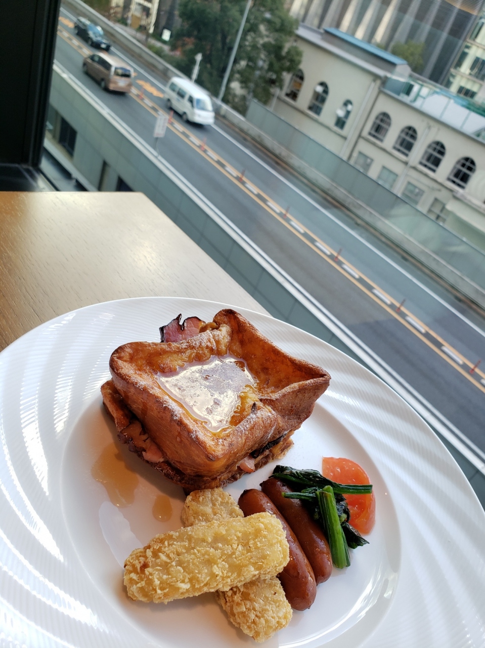窓が小さく、眺望は少し残念とはいえ、パーシャル皇居ビュー。ペニンシュラ、ミッドタウンビュー。真下に線路ビュー(新幹線も)。レストランからのKK線ビュー少し楽しい。