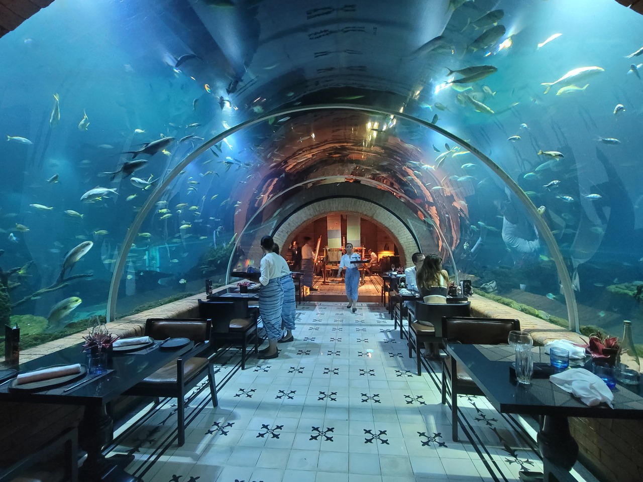 水族館レストラン『コーラル』がなんといっても一番の大イベント。このホテルに宿泊したら、早めの予約でなんとしてもトンネル席を確保したいところ。
