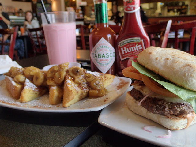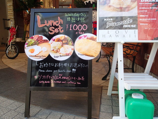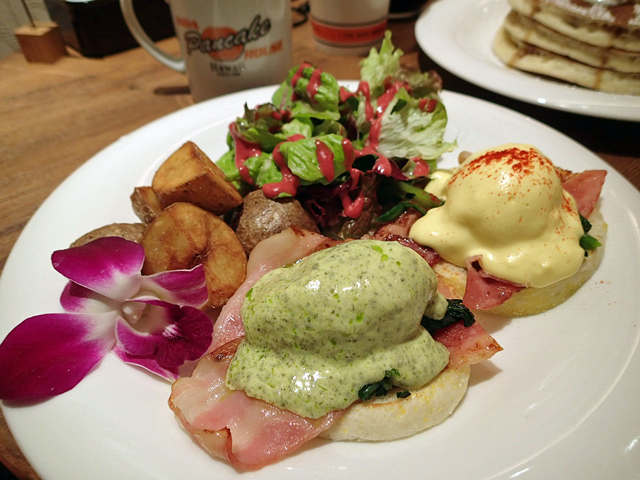 オープン当初から、それほど混雑することなく、今回訪問した(2015年1月8日)平日昼間は、ランチどきだというのに、店内にお客さん3組、店員さんも2名と、パンケーキブームにあって「並ばなくていい」ハワイ発のパンケーキ屋さんです。経営大丈夫か? と余計な心配をしてしまいますが、ハワイでもワイキキから離れた場所にあるので、ハワイ店、全米チェーンの「宣伝」というか「東京旗艦店(←と呼ぶほど大きいお店ではありませんが)」としては機能しそうです。