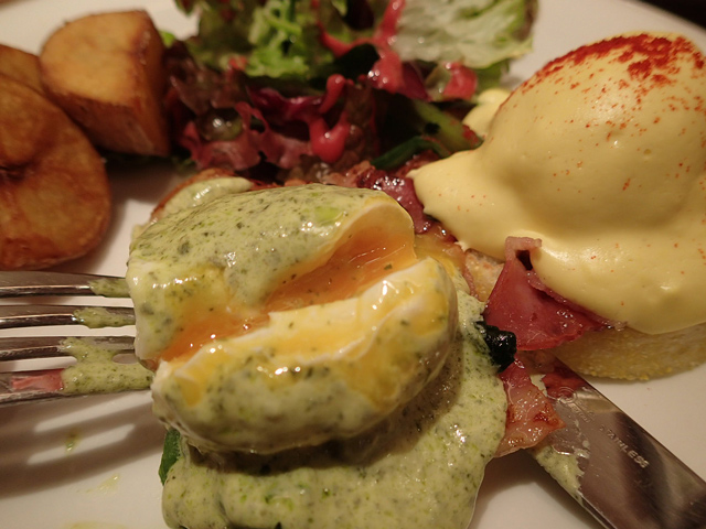私はここでエッグベネディクトを食べ、その後、隣りのメロンパンアイスをパクつきながら代々木公園を歩きました。NHKも近所です。