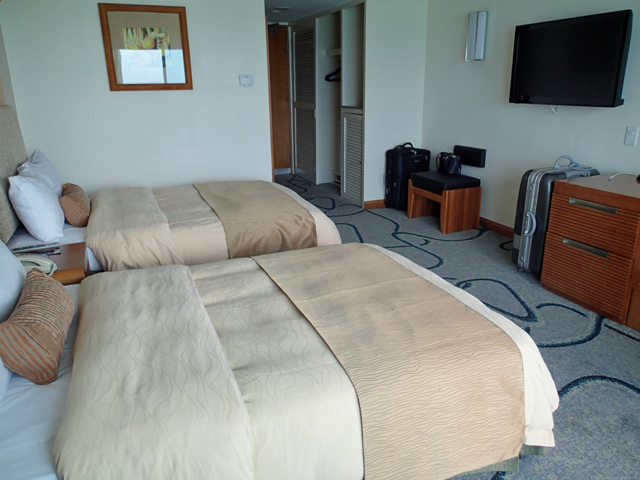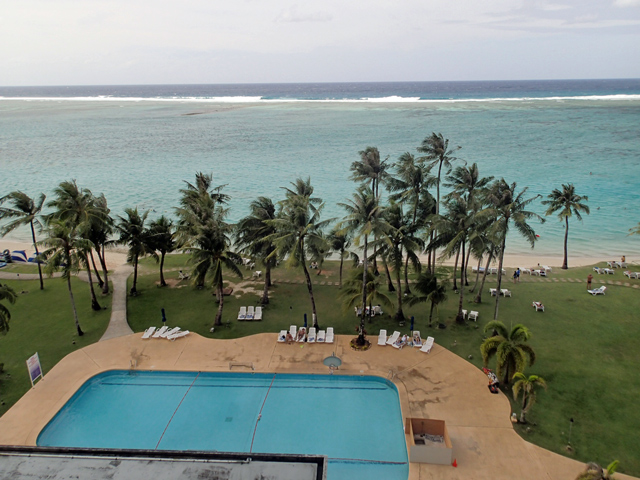 オーシャンビュールームを 1泊 13,500円で予約。アサインされたのはオーシャンフロントだったので、この点については非常に満足。また、オーシャンフロントでも、部屋によってはヤシの木が邪魔になって、景色が良く見えないようだが、この部屋の列は遮るものがなくてとても良かった。