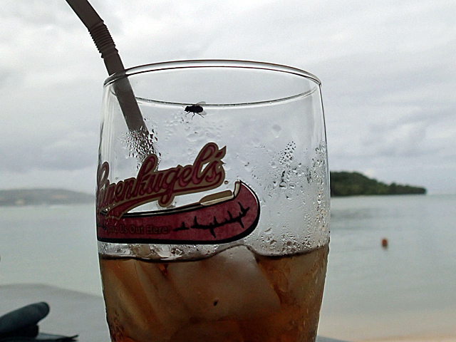 【ハエよハエよハエたちよ】海沿い(本当に海に近い)で、シチュエーションもいいのですが、海沿いレストランだからこそハエがいるのは仕方ないところか。日によって、多少の差はあるかと思いますが、私たちが食事しているときは、ほかにそれほど客もいなかったせいもあって、ハエたちに徹底的に、これでもか、これでもかと旋回されまくりました。レストランとして、特にハエ対策のようなものは講じてはいないようです。「ハエ成仏(ハエの捕獲器)」を導入すればいいのにと、ここで提案しても話にならんか(笑)