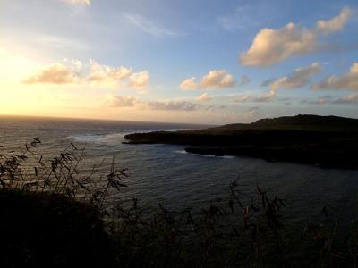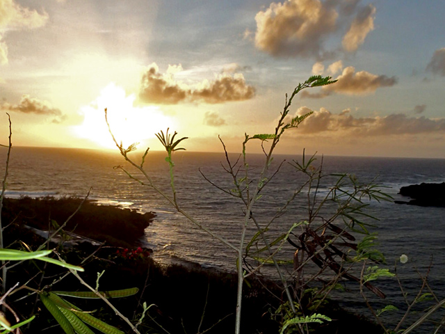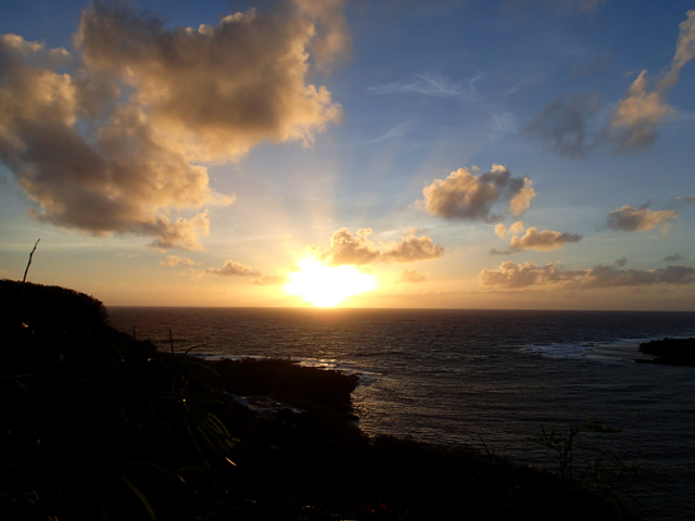 グアムで日の出を見るのは、ホテル街が島の西側にあるので難しいですが、レンタカーでこの場所までいけば、絶好の日の出の場所になります。下まで下りて、ビーチ側から見てもいいと思います。私は高台側からの日の出を見ました。タモンのホテル街からは30kmほど。日の出時刻の40分前にはホテルを出発しておきたい。日の出時刻を調べておくこともお忘れなく。