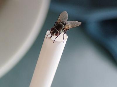 【ハエの自衛対策】ミント系、ハーブ系の匂いをハエは嫌います。それ以上に食べ物の美味しい匂いがすれば、近寄ってくるとは思いますが、試してみてはいかがでしょう。ミント系、ハーブ系の香水、もしくはクリームを身体に塗って。プラス、防虫スプレーをふっていけば、まったく対策なしよりは良いと思います。