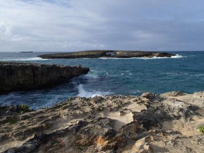 ※「とかげ」云々の話が、この場所ではおなじみとなっています。当初私は、岬から見える「穴あき岩」を見て「とかげの形(全身)には見えないよー」と思っていましたが、勘違いだったようです。私たちが立っている、ライエポントその場所こそがとかげ。海に突き出た岬(ポイント)の先端が「とかげの尻尾」ってわけです。地図で確認してみてください。なるほど尻尾っぽいでしょ? 穴あき岩は、バラバラになったとかげの切り身、という扱いみたい。- 旅行時期