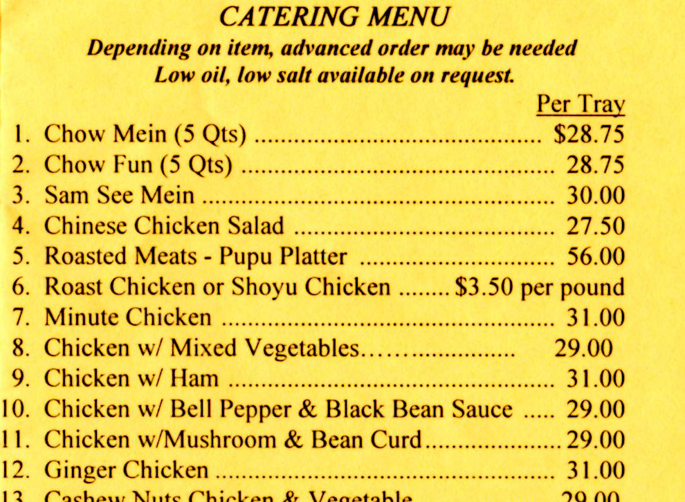 メニューの一部、写真に載せておきます。ケータリングもやっているようです。
