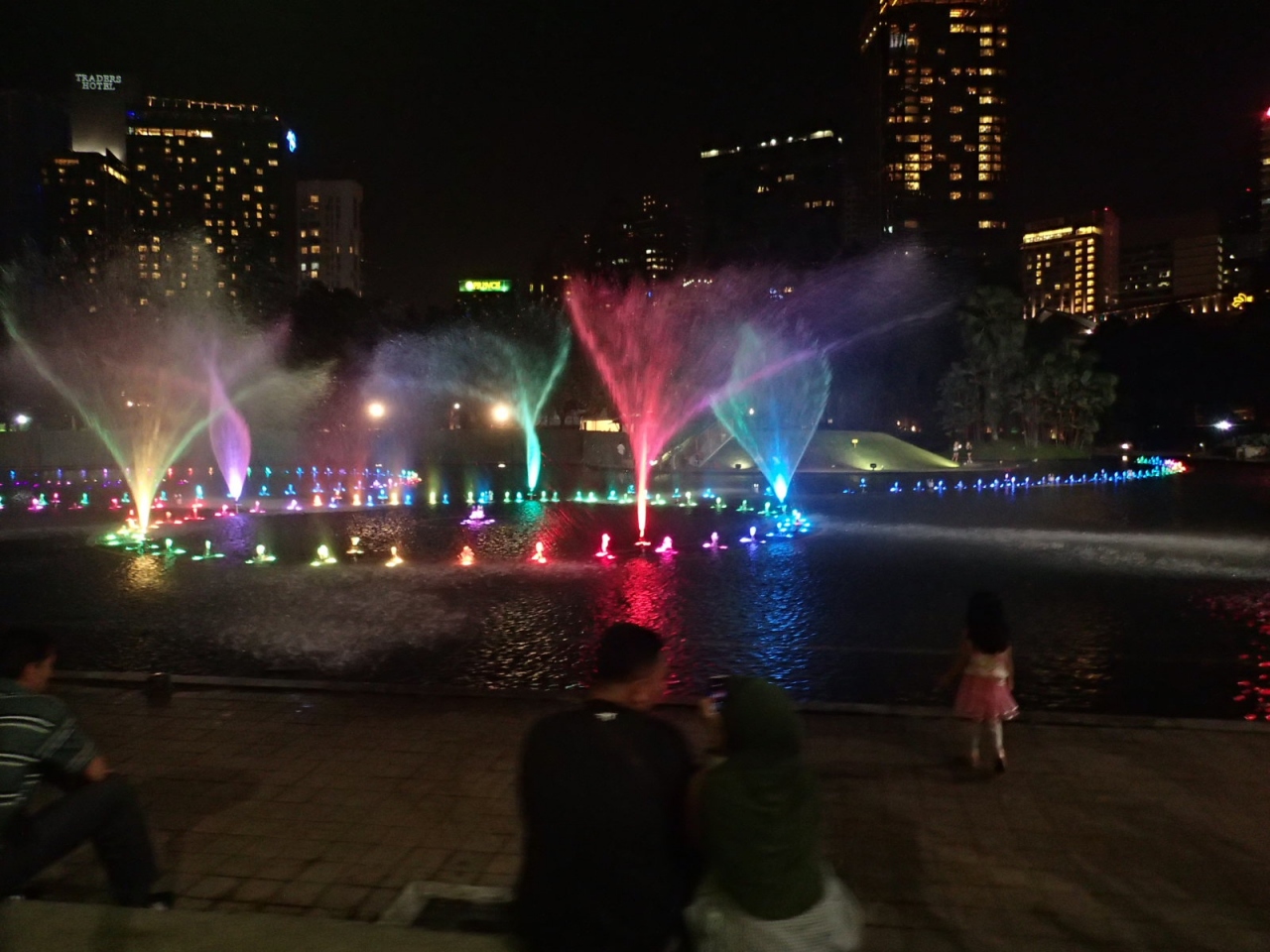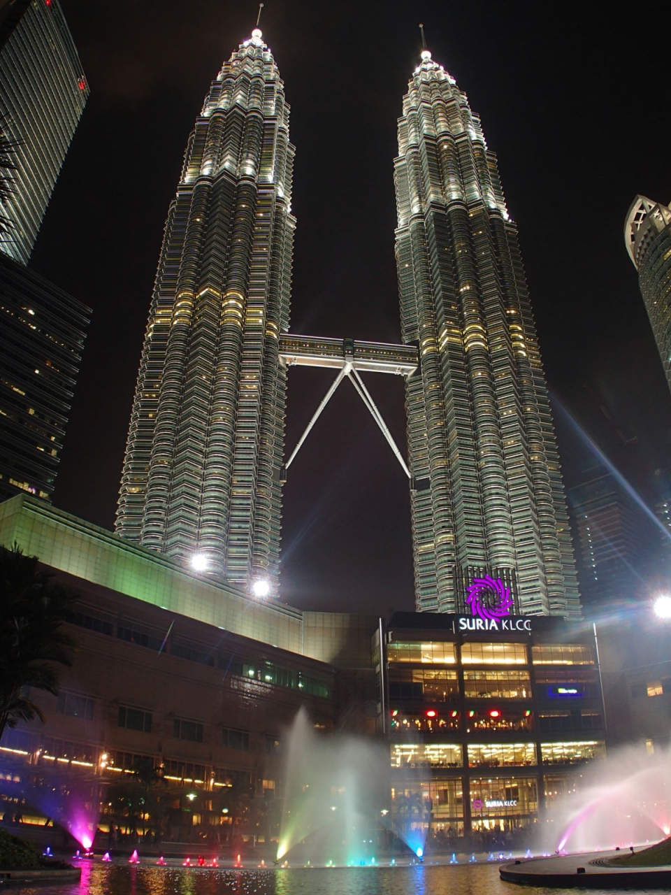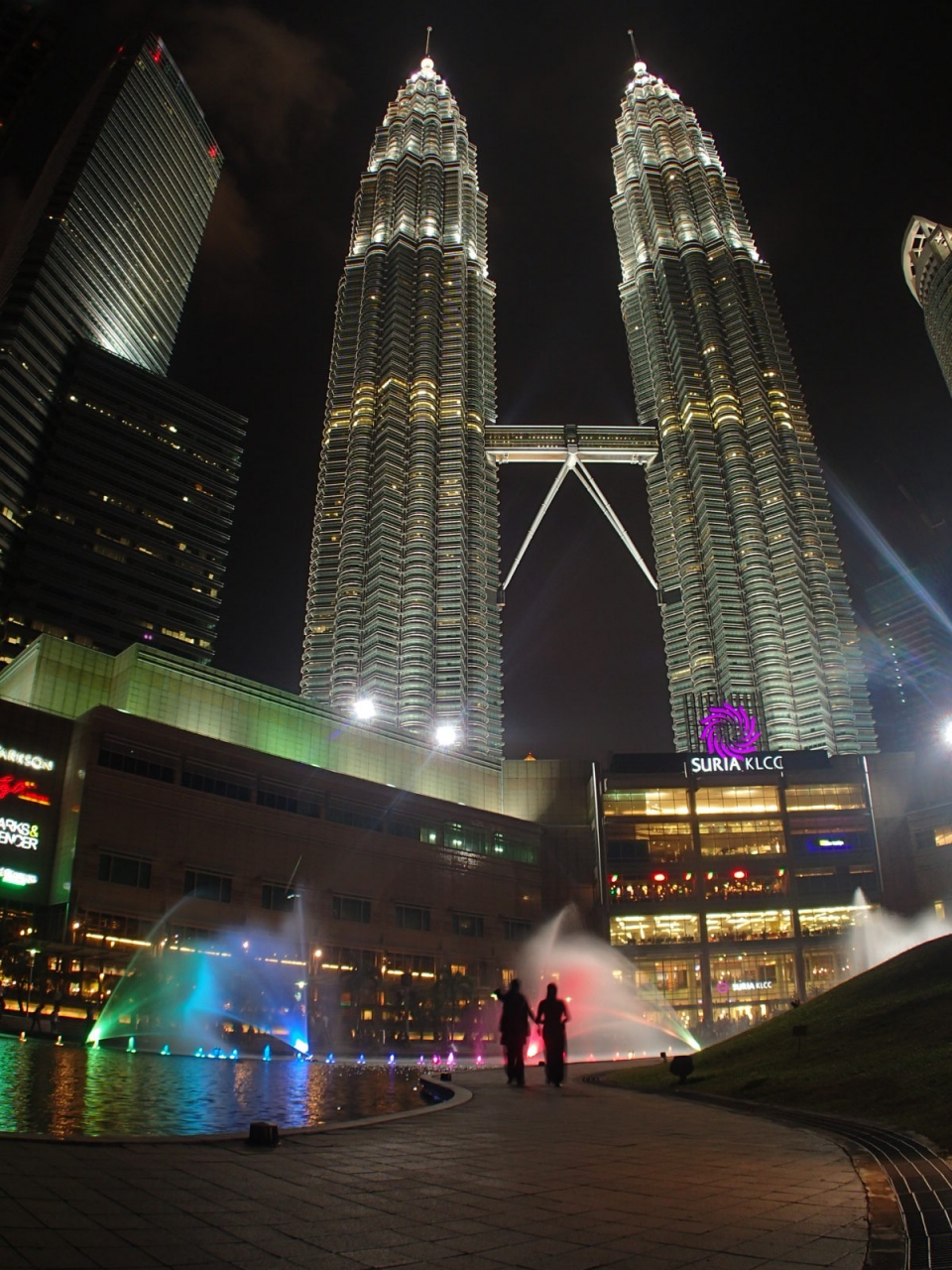 ペトロナスツインタワーとKLタワーを同時に撮影出来るポイントは何ヵ所かありますが、ここ、KLCCパークからもなんとかイケます。ツインタワーのふもとから、モスクの横を通って広場のあたりまで来ると、タワーを同時に撮影することが可能です(2枚目の画像25mmレンズ/35mmでも可能)。