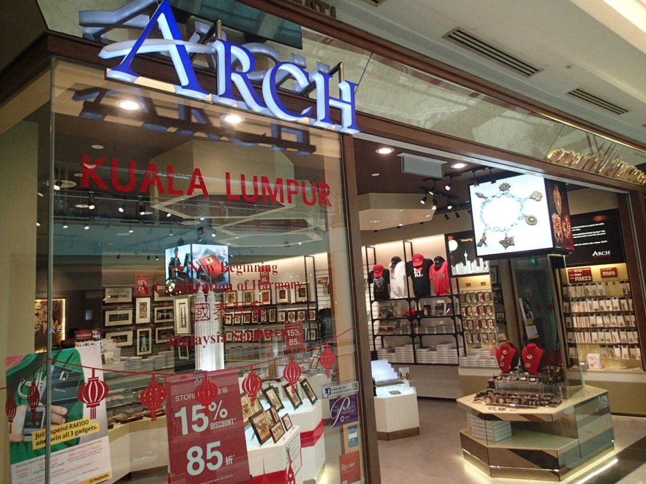 中でもオススメなのが、ギフトショップ『ARCH』で、自分や家族用の記念になる雑貨品や、ちゃんとしたものを贈りたい友人用に購入するのにいいお店(要はバラマキ用ではなく)で、センスのいいものが並ぶ。我が家では、メモ帳、キーホルダー(11リンギ)、しおりなどを購入しました。AMPANG MALLの3階エスカレーターすぐそばにある。