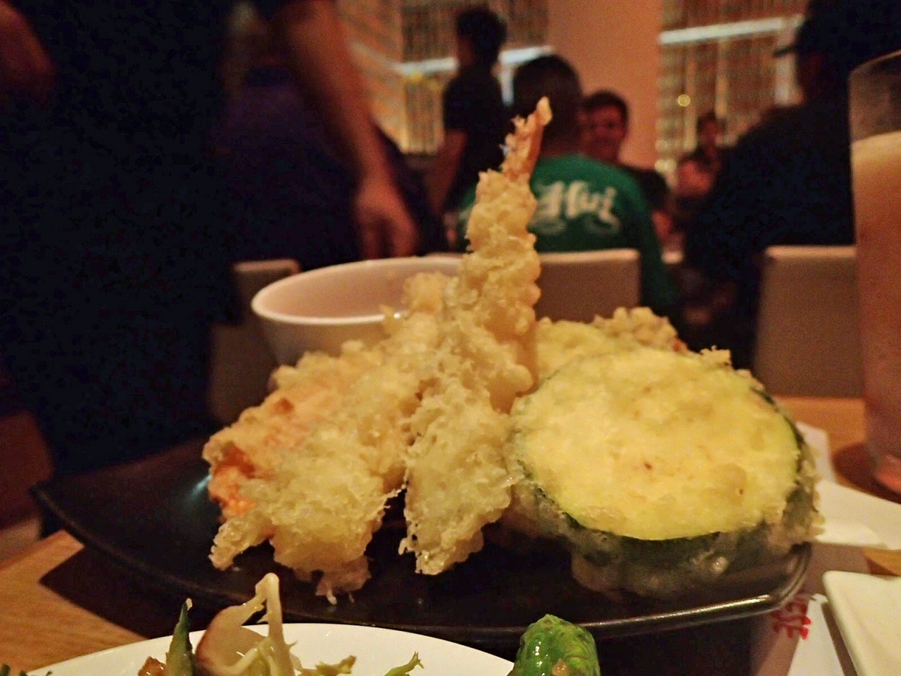 入店してすぐに「日本人の方ですか? 日本人の方には満足できないかもしれないのですが…」というようなことを(謙遜して? 前もって言い訳で?)言われましたがとんでもない。外国人でにぎわう雰囲気も、カラッと揚がった天ぷらも巻きZUSHIも、全て満足です。なんてったって、醤油が2種類置いてあるってこだわり、素晴らしいじゃないですか!(普通の醤油と、薄口醤油)。店内の雰囲気はガヤガヤ賑やか、ノリとしては、居酒屋。