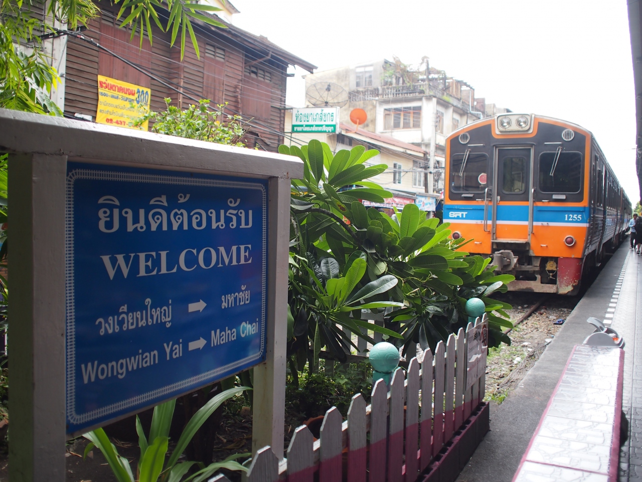 傘たたみ市場『メークローン市場』へ行くのに、バンコクからだとこの駅からマハーチャイで乗り換えて行く事になる。