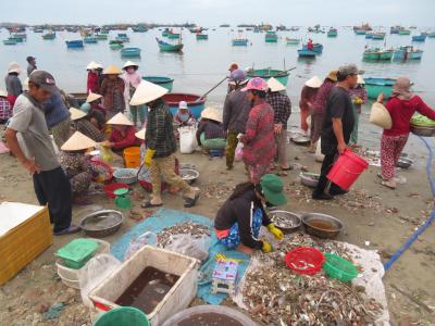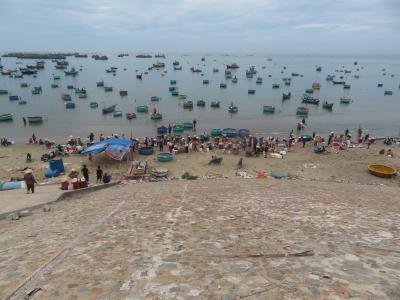 ムイネー定番のジープツアー(妖精の渓流、白い砂丘、赤い砂丘等を訪問)にも参加し、地図の左上側のMuine Fishing Villageを訪問。午後のツアーだったが、市は開かれておらず。道路沿いの高い場所(見渡しのいい場所)での撮影タイムのみだが、それでも、ここ特有の船が沢山停泊している風景を見ることはできた。- 旅行時期