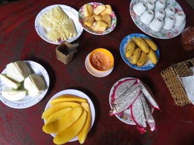 シンツーリスト発8:30過ぎ<専用バスで移動>10:06ミトーのボート乗り場10:20<エンジンボートでメコン川横断>10:40トイソン島のハチミツ養殖場にてハチミツ入りのお茶・ローヤルゼリー試飲食、ホワイトスネーク見学(希望者は蛇を両肩に乗せて記念撮影)、ポップライス製造工程見学・おこしのような米菓子試食 11:29<電動カートまたはトゥクトゥクで移動>11:37フルーツ試食・伝統音楽鑑賞11:56 12:14<手漕ぎボートで運河を移動>12:31 12:37<エンジンボートでメコン川を移動>12:45ランチ13:40<エンジンボートでメコン川を移動>13:55メコン川の対岸(ベンチェー)にてココナッツキャンディー工場見学・試食14:14<エンジンボートでメコン川を移動>14:30ミトーのボート乗り場14:35<バスで移動>16:12シンツーリストで解散- 旅行時期