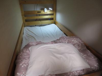 両津港まで徒歩圏内。両津港5:30発のフェリーに乗るために便利だった。できるだけ安く泊まりたかったのでドミトリーに泊まった。ただ、ドミトリーにしては料金はお高め(5100円)。ドミトリーはベッド毎にカーテンとライト、コンセントが付いていた。共用のキッチンや冷蔵庫があり、建物内も綺麗に管理されていて居心地は良かった。