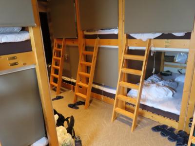 アコーディオンカーテンで開け閉めする(鍵付き)簡易宿泊施設だが、その分料金は手頃。共用スペースが広く、リラックスすることができた。スーパーが近くにあるので、翌日の朝食を買っておくこともできた。- 旅行時期