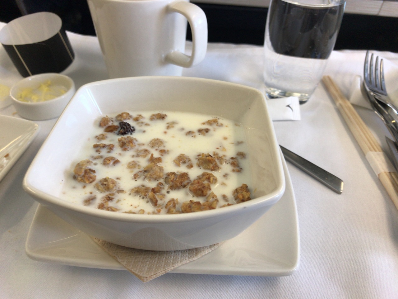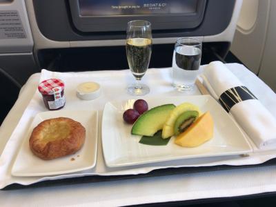 朝10時発のCX523便は朝食とのことでしたが、ドリンク、フルーツプレート、パン、シリアル、ヨーグルト、朝食メインディッシュ、コーヒーor紅茶と正直食べきれないほど。