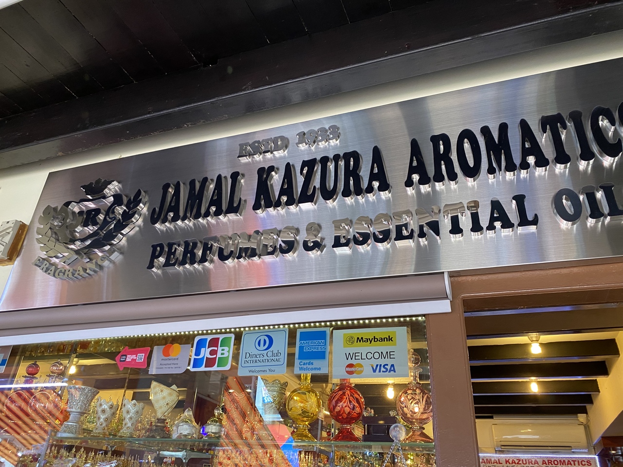 アラブストリートにあるお店です。サルタン・モスクの目の前の通りにありました。かわいい香水瓶がたくさん売っています。香水もいろいろな香りのものが売っていました。各種クレジットカードも使えるし、とても親切でした。