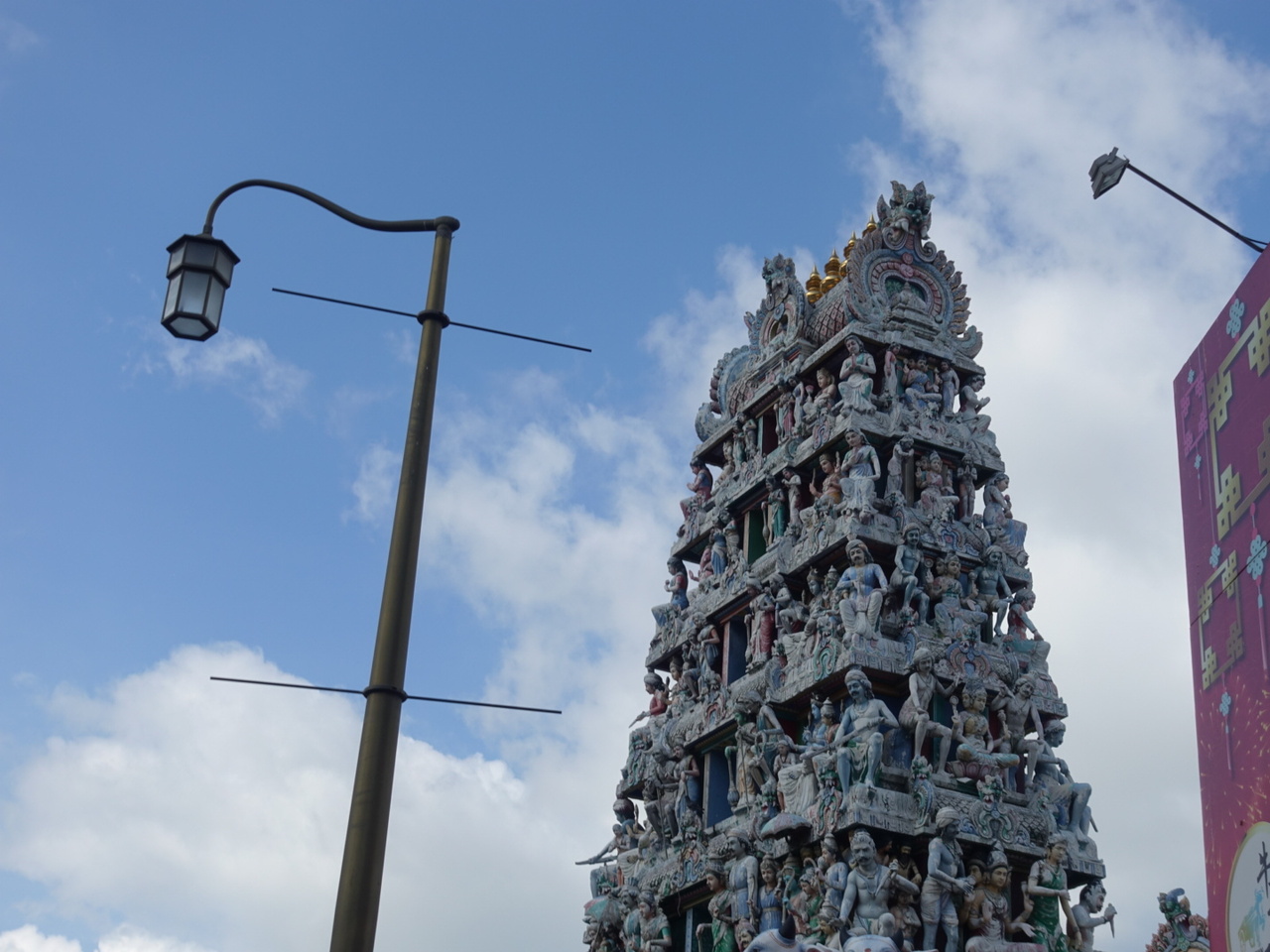 JTBの半日観光のオプショナルツアーで行きました。チャイナタウンにあるヒンドゥー教の寺院です。中の写真を撮るにはお金が必要だそうです。外からは撮っても良いとのことでした。靴を脱いで中にも入ることができます。