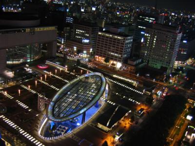 「名古屋テレビ塔」からの眺め。丸く青く光る施設は「オアシス21」ホテル...
