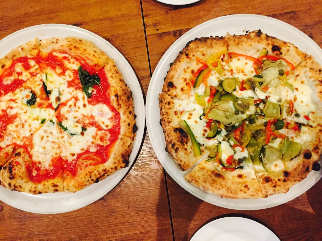 クワトロフォルマッジとマルゲリータ、野菜のピザを注文してシェア。