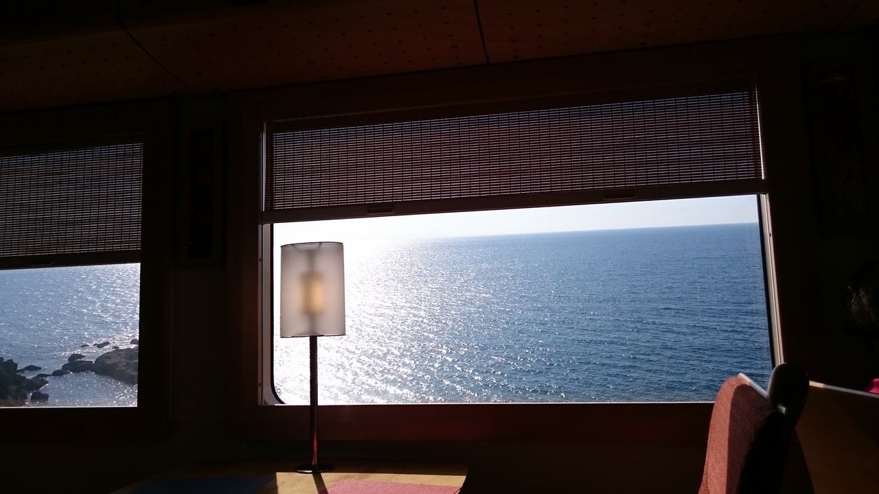部屋に置いてあるバードウォッチング用の望遠鏡で月や鳥を見る事も出来