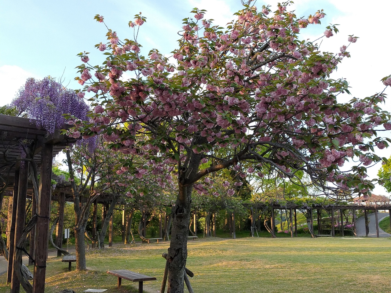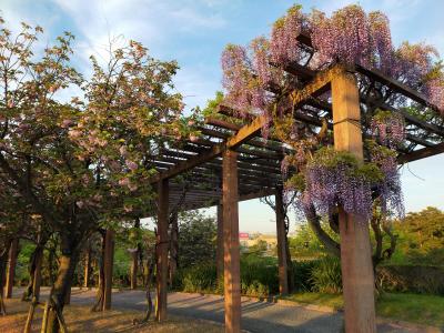 里桜に藤棚を見上げながら遊歩道を歩き、数色のボタンを観覧☆