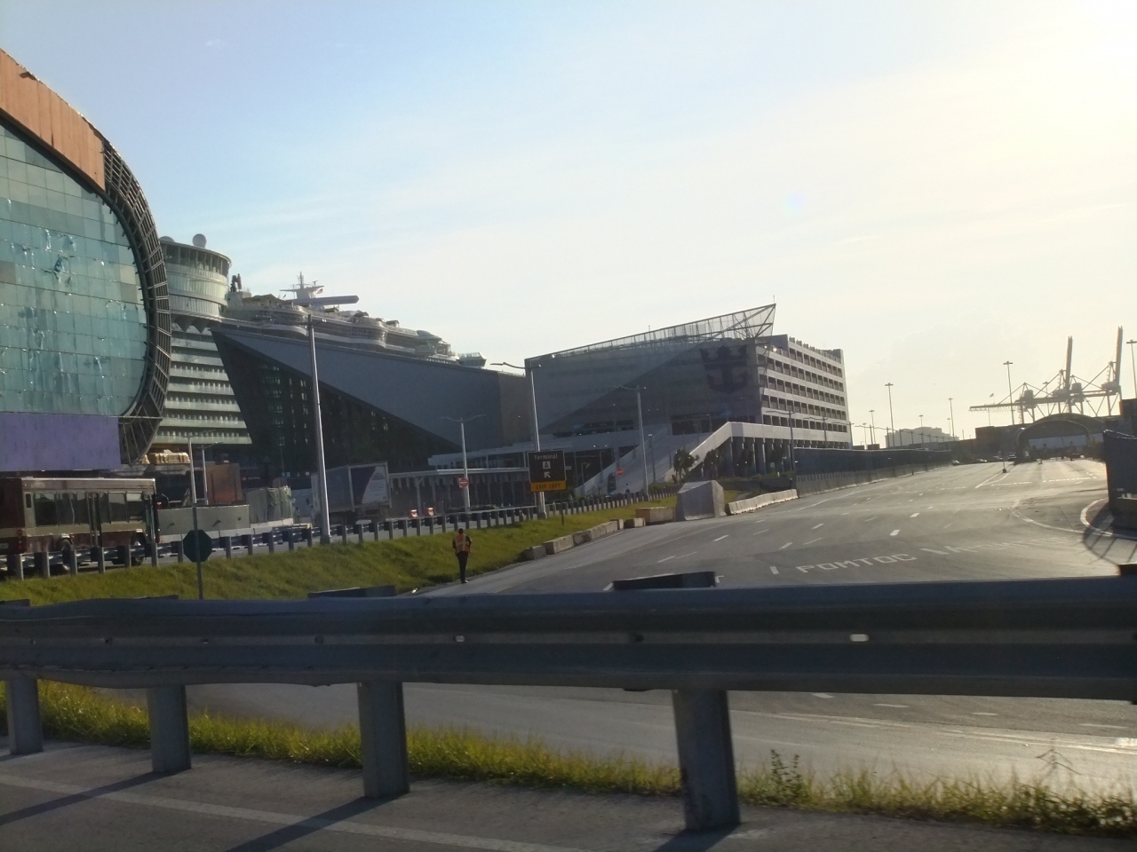 クルーズ船の出航後、改めて船上から眺めると、広大さと劣化をしみじみと感じた。