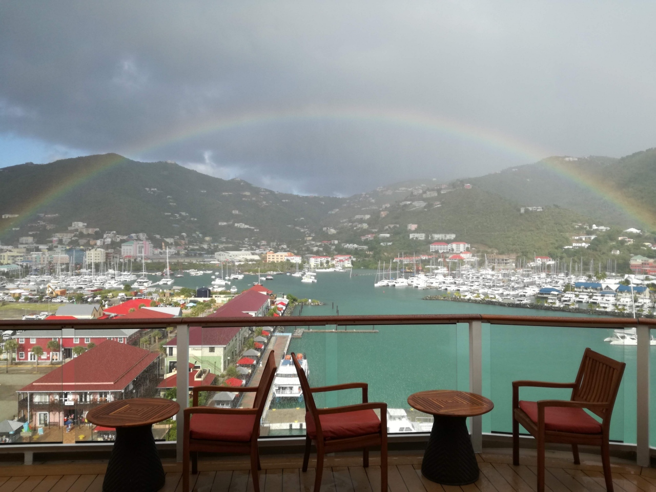 カリブ海の山に見える可愛い家々を見ながら至福の時間。