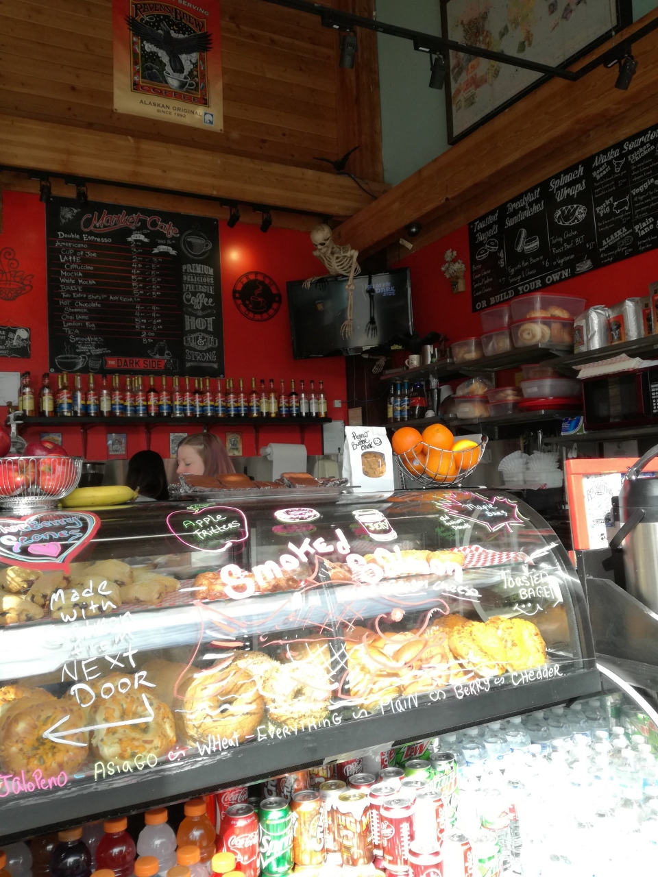 以前に郵便局だった場所は、Barになっていて、長いカウンターが物語っている。