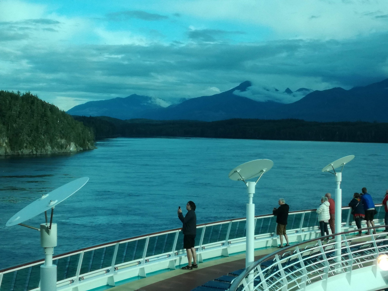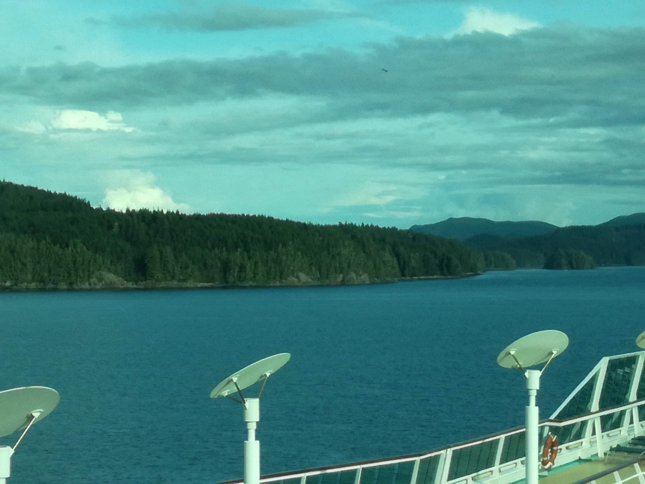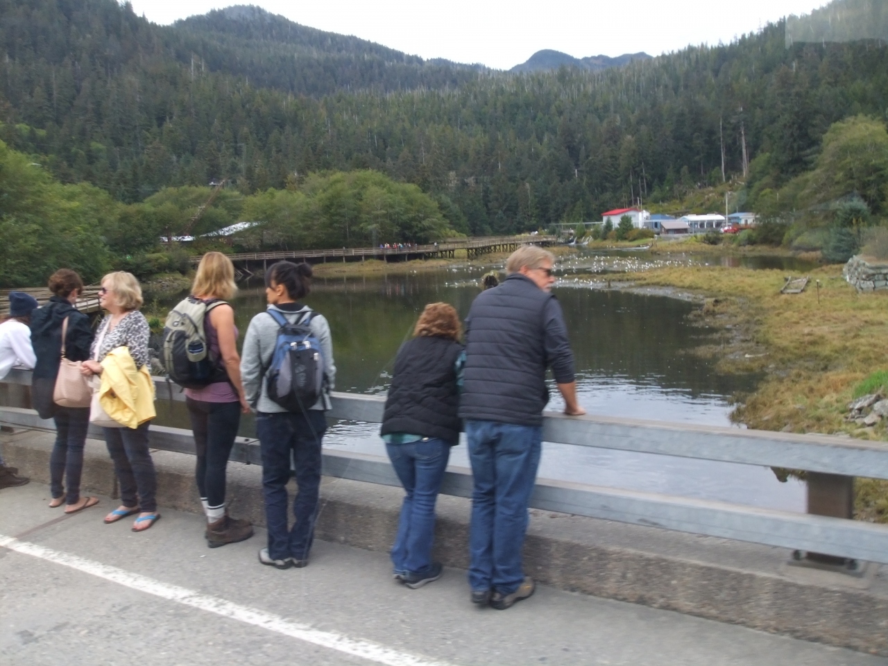 クルーズ船が停泊する港を背に、『Welcome to Ketchikan』の観光表示(?)は多分撮影スポット!