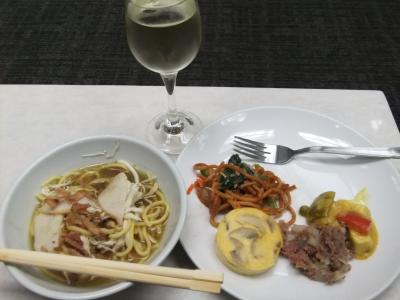 機内では赤ワインを頂くことが多いけど、冷たい白ワインを♪- 旅行時期