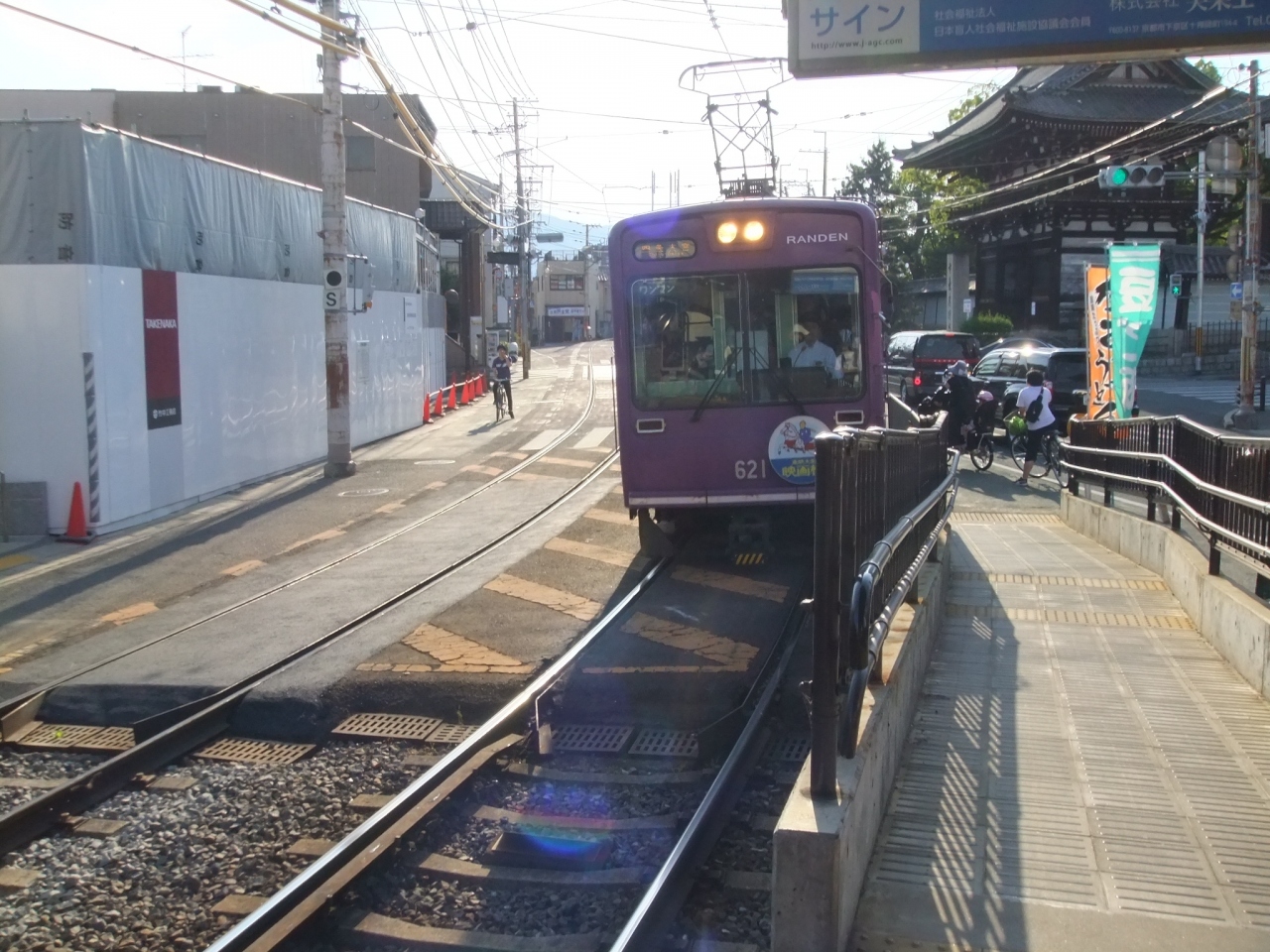嵐電の太秦広隆寺駅で下車、ホームから既に山門が見える。