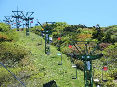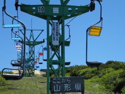 これまた久々のリフト、上がっていく足元に‘ここから宮城県’と表示があり感激。