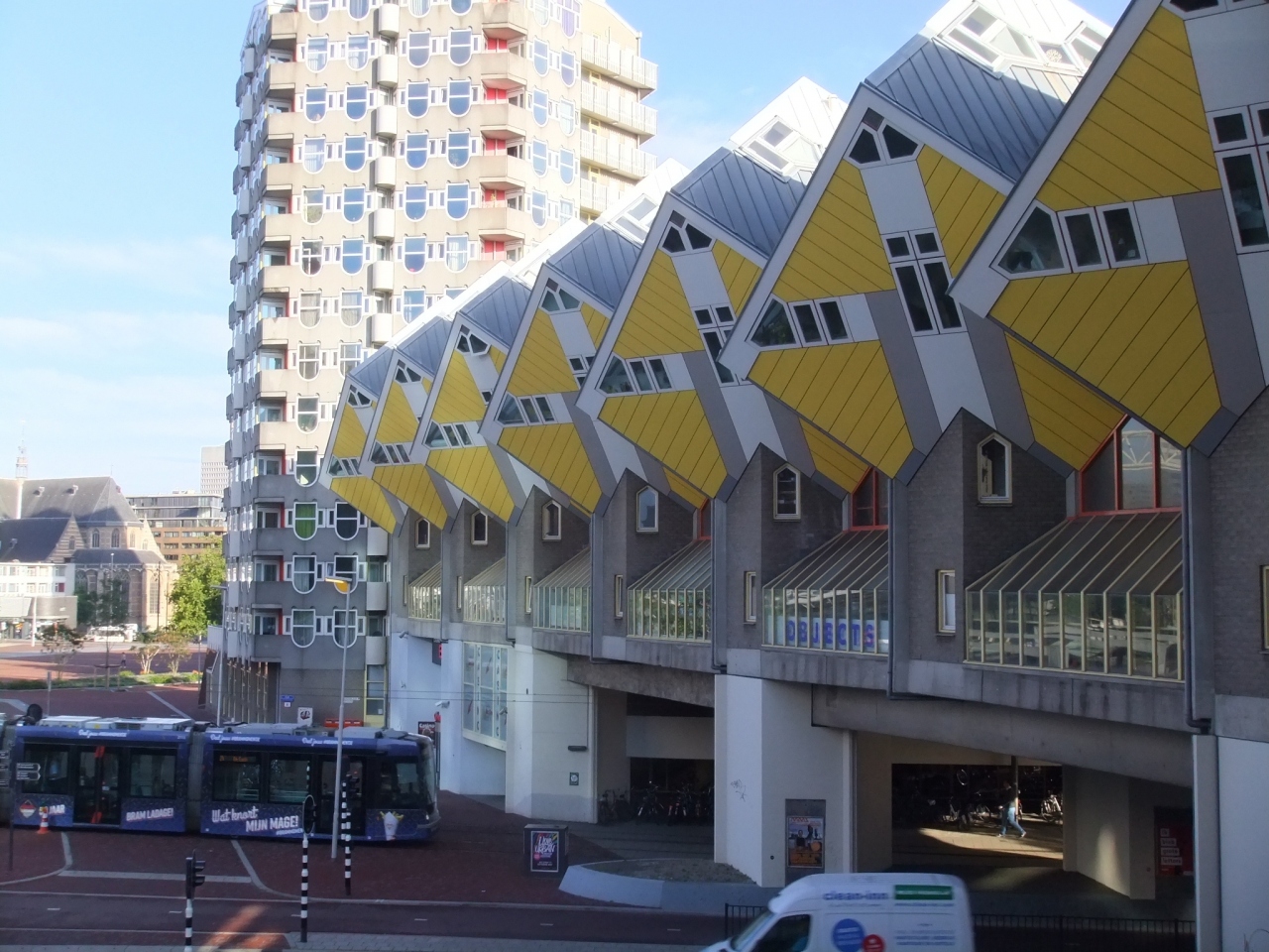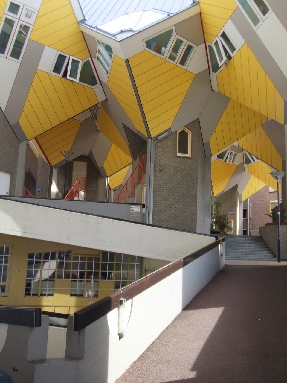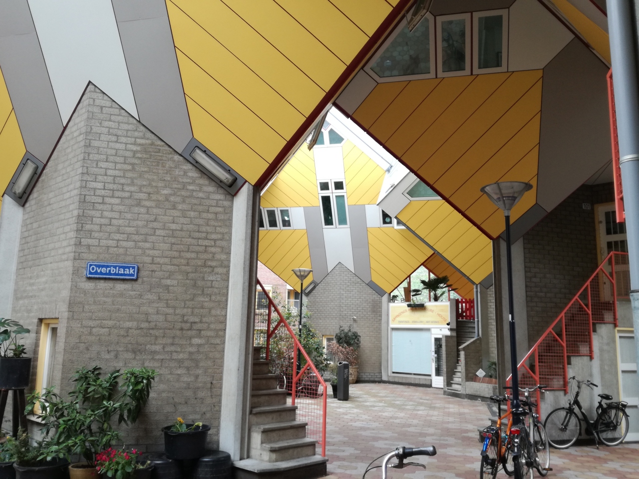 アムステルダムでも提携ホステルに宿泊したけれど、何といってもココは‘キューブハウス’目を惹く黄色い立方体の建物。