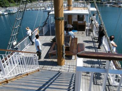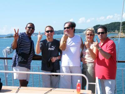 帆船の観光船では、海外からの旅行者も多く、写真を撮り合ったり楽しかった。