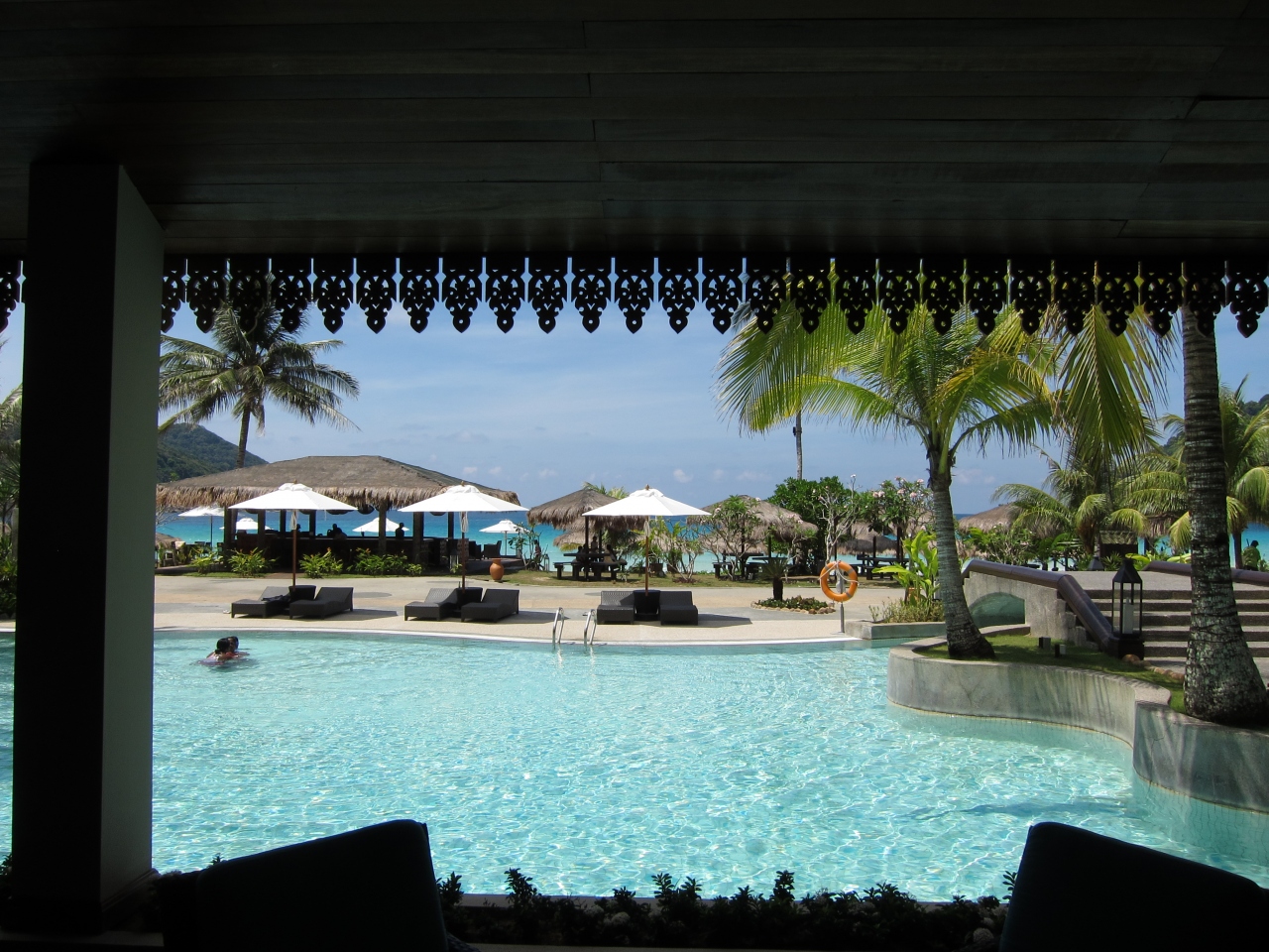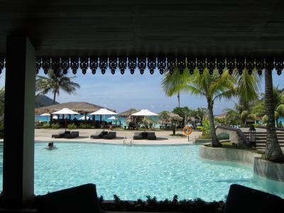 プールの見えるテラス席は,優雅で雰囲気良い.
