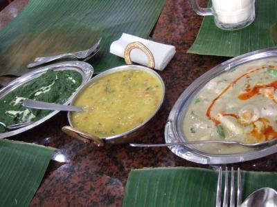 私はもっと甘めのホウレンソウのカレーや、レンズマメ(だと思う)のカレーをオーダーしてシェアするのが好きです。