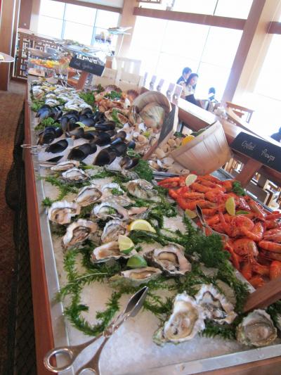 オイスターバーに、フォアグラ、数種類のチーズやケーキにフルーツ、そしてチョコレートファウンテン♪