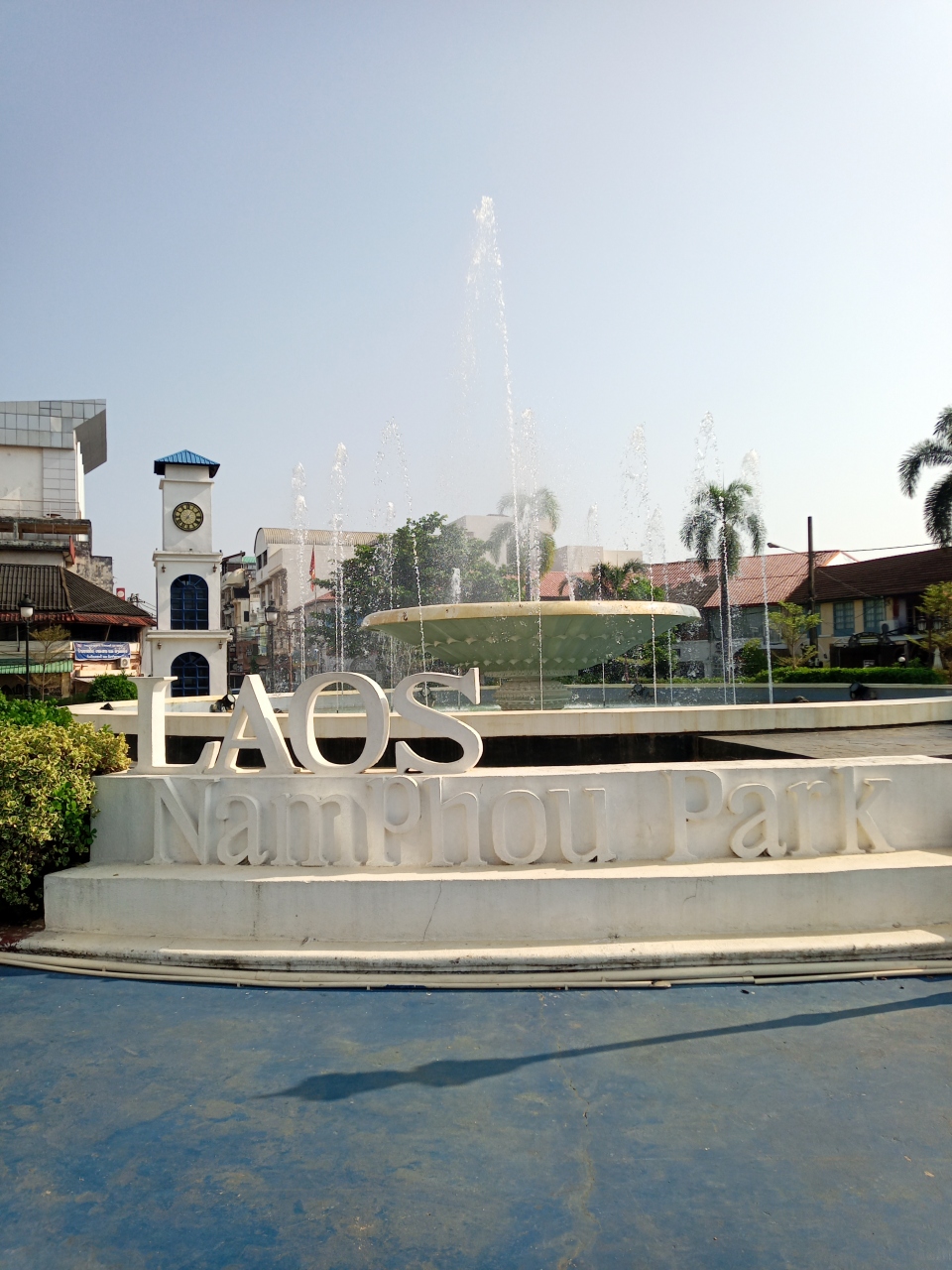 特に露天商や物売りなどは私が行った時間にいませんでした。周りは飲食店などがたくさんある地域ですので朝の散歩や夕方の食事前などに写真を撮りに訪れると良いと思います。写真が撮れるように大きな文字の看板もあります。(LAOS Namphou Park)